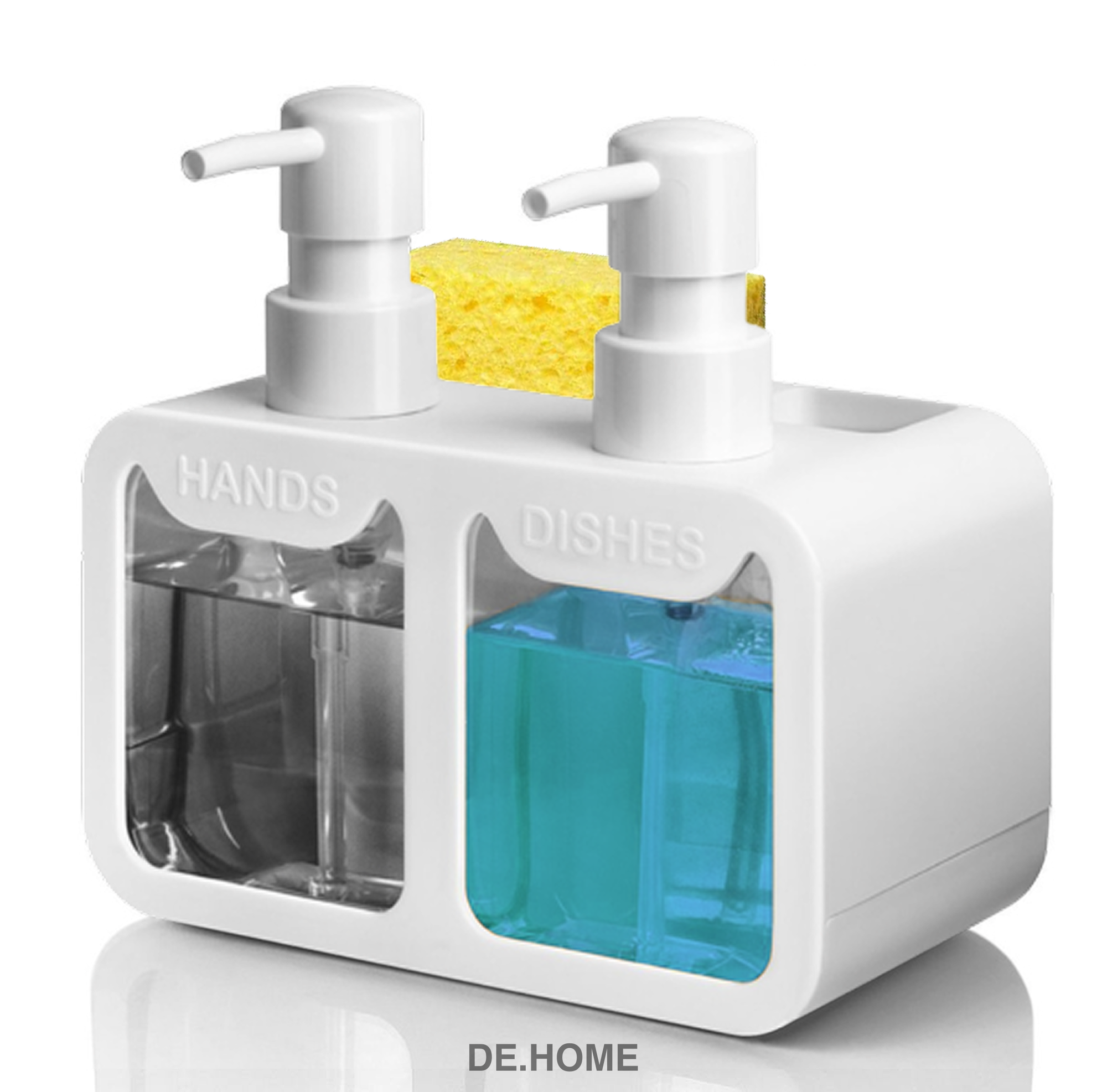 DE.HOME Двойной диспенсер для моющего средства с губкой и дозатор для жидкого мыла, с губкой, белый 1 290 ₽
