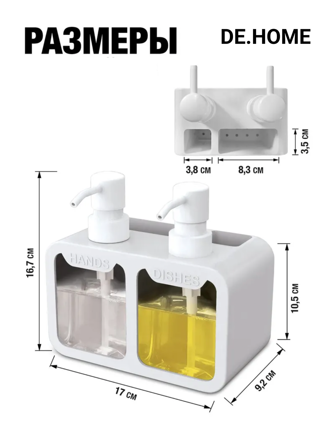Отзывы на DE.HOME Диспенсер двойной для кухни 2х350мл, в комплекте с губкой, белый
