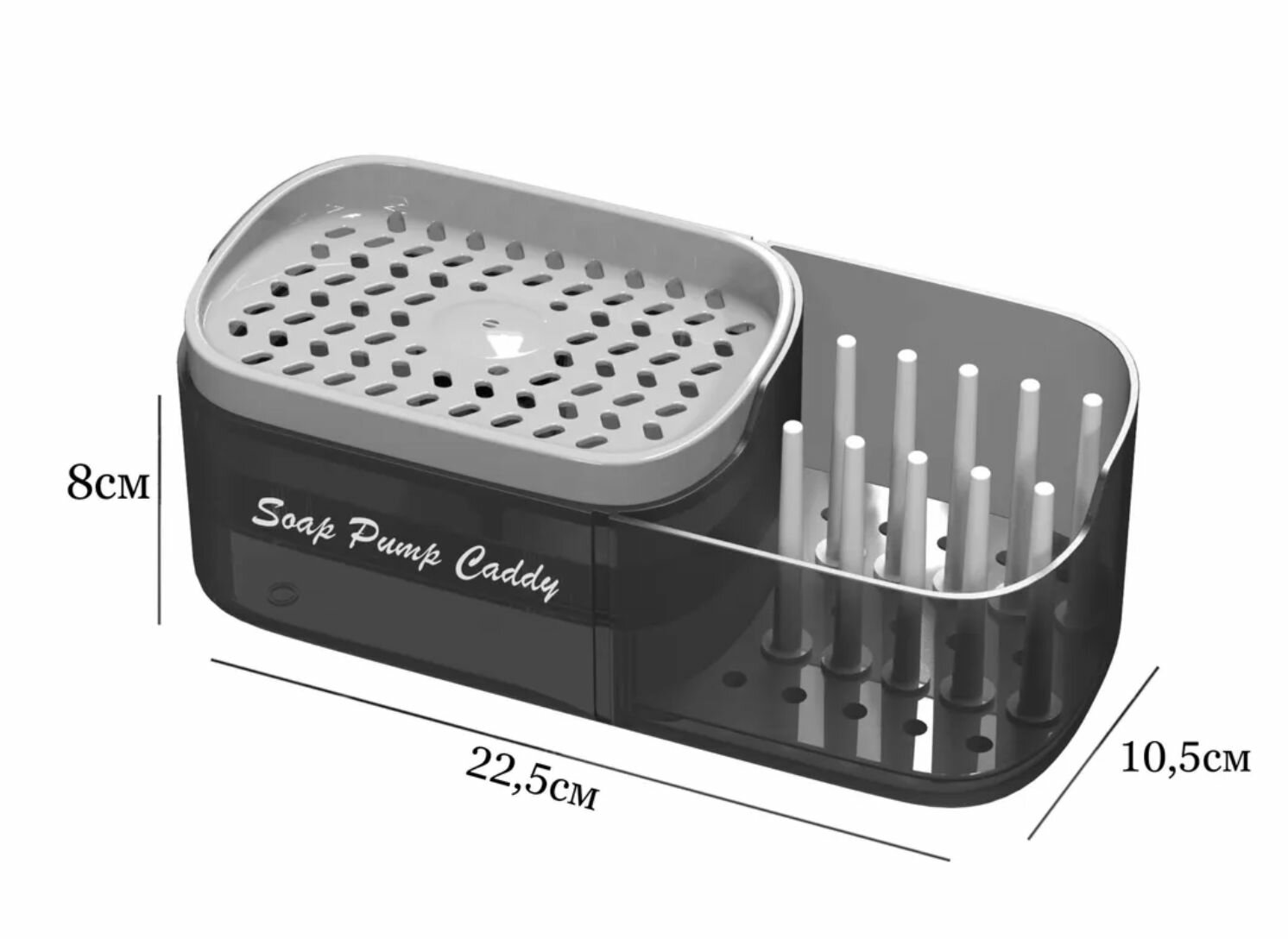 DE.HOME Диспенсер с губкой, дозатор для жидкого мыла 300 мл, с дополнительным отделением, черный информация: