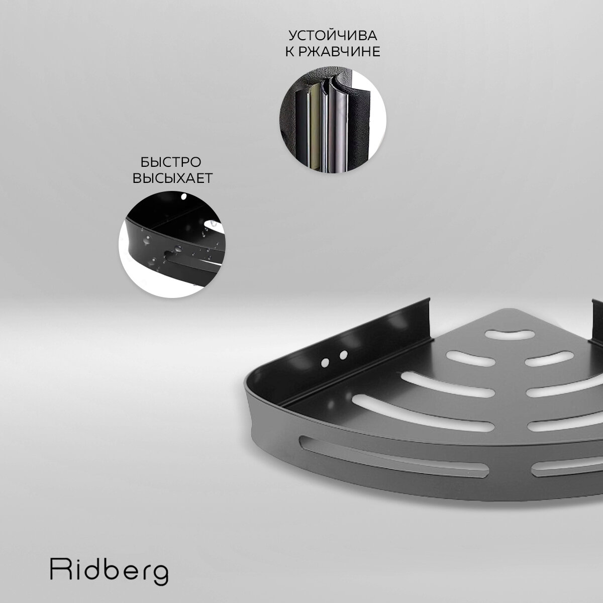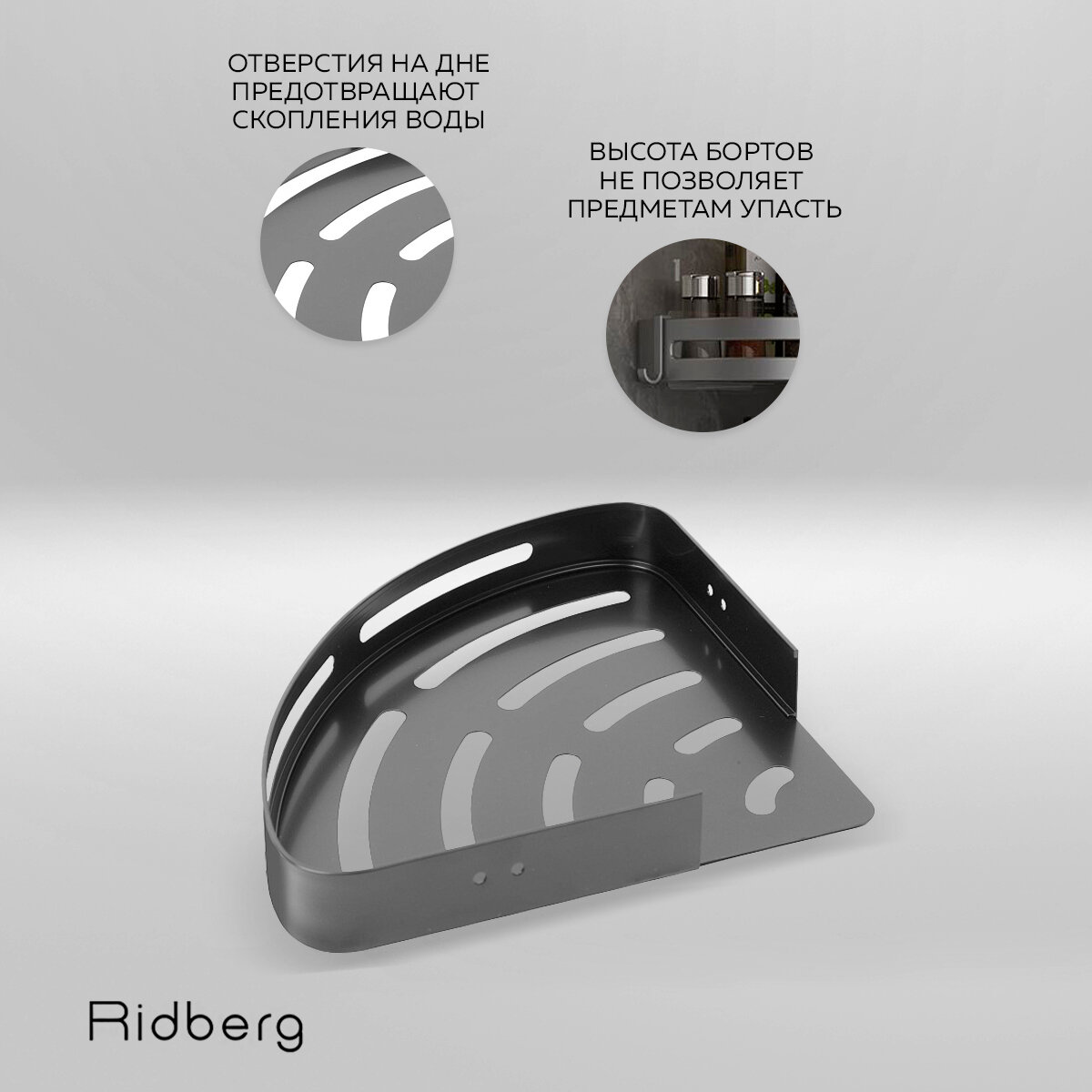 Отзывы на Полка для ванной угловая Ridberg, серая, без сверления, 3 шт / Полочка в ванную настенная, на кухню