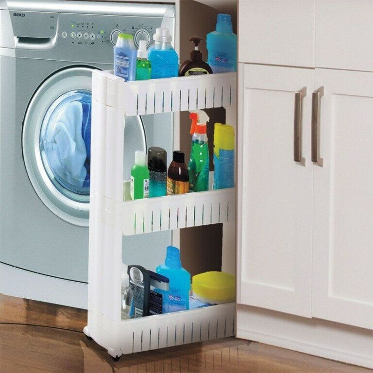 Полка в ванную комнату на колесиках, узкая, 3 яруса, LeetBrin информация: