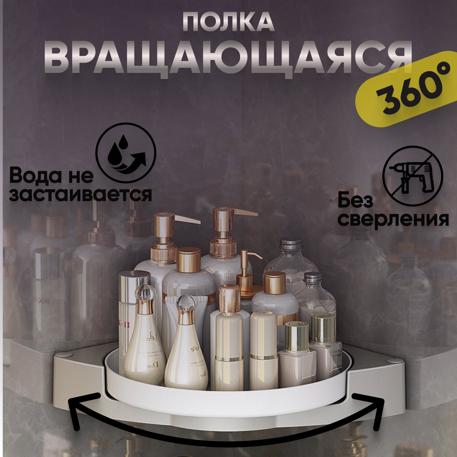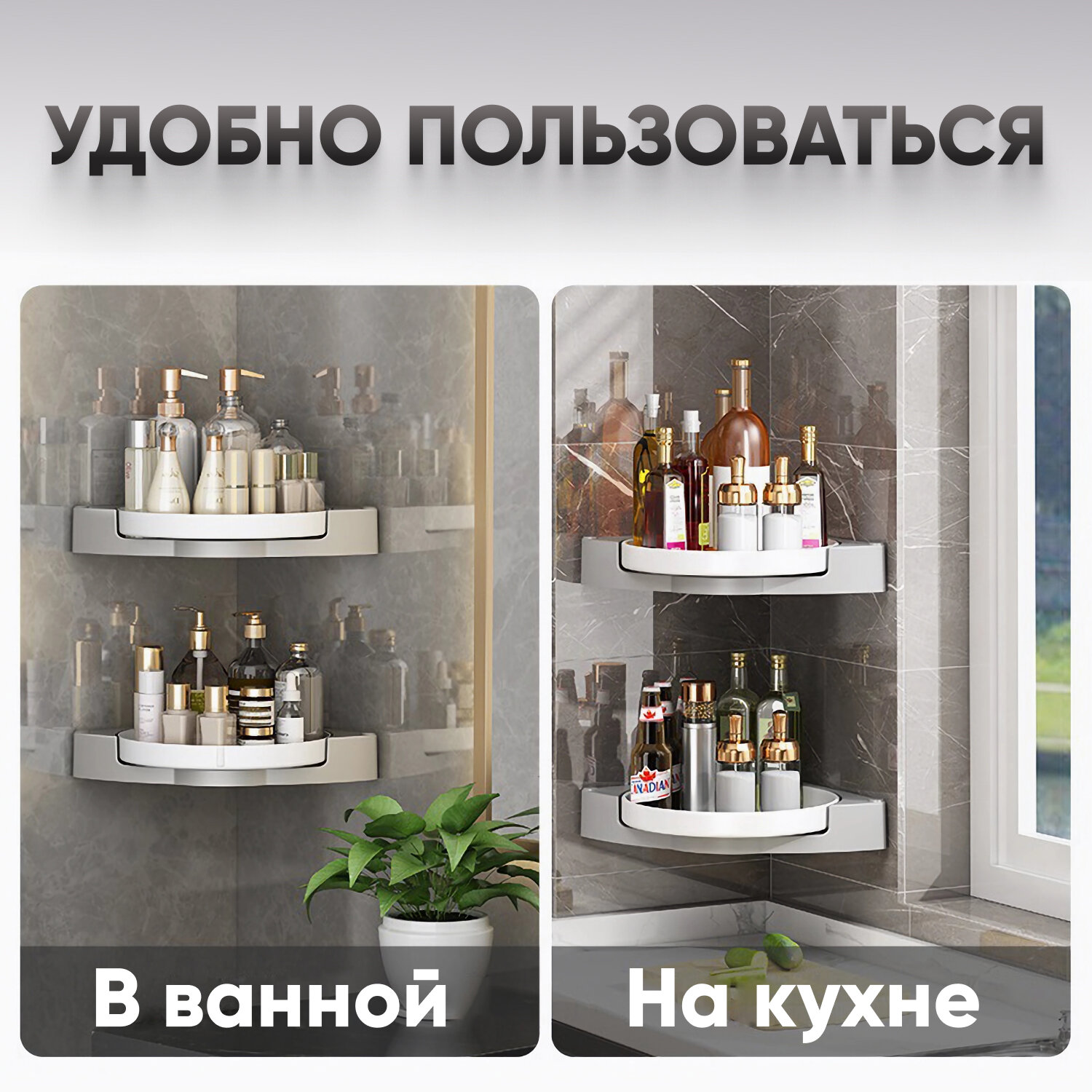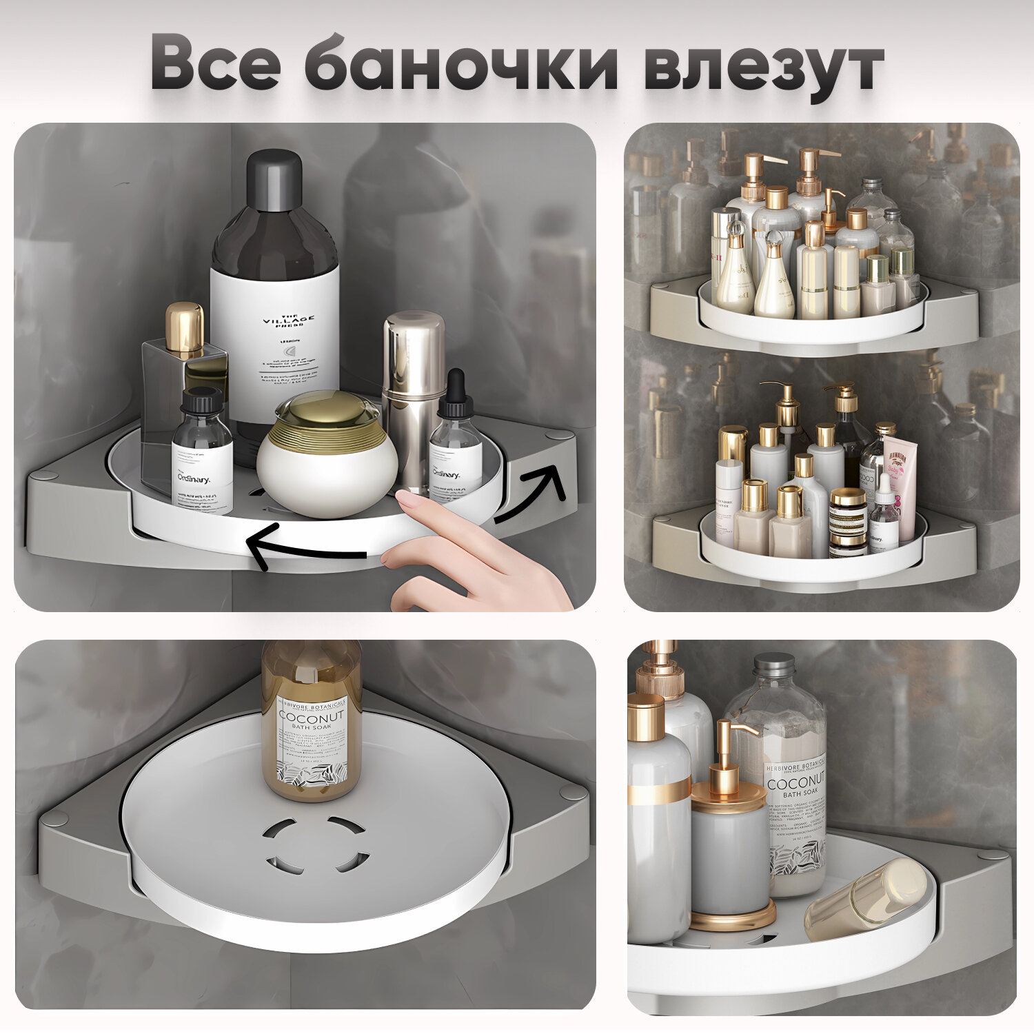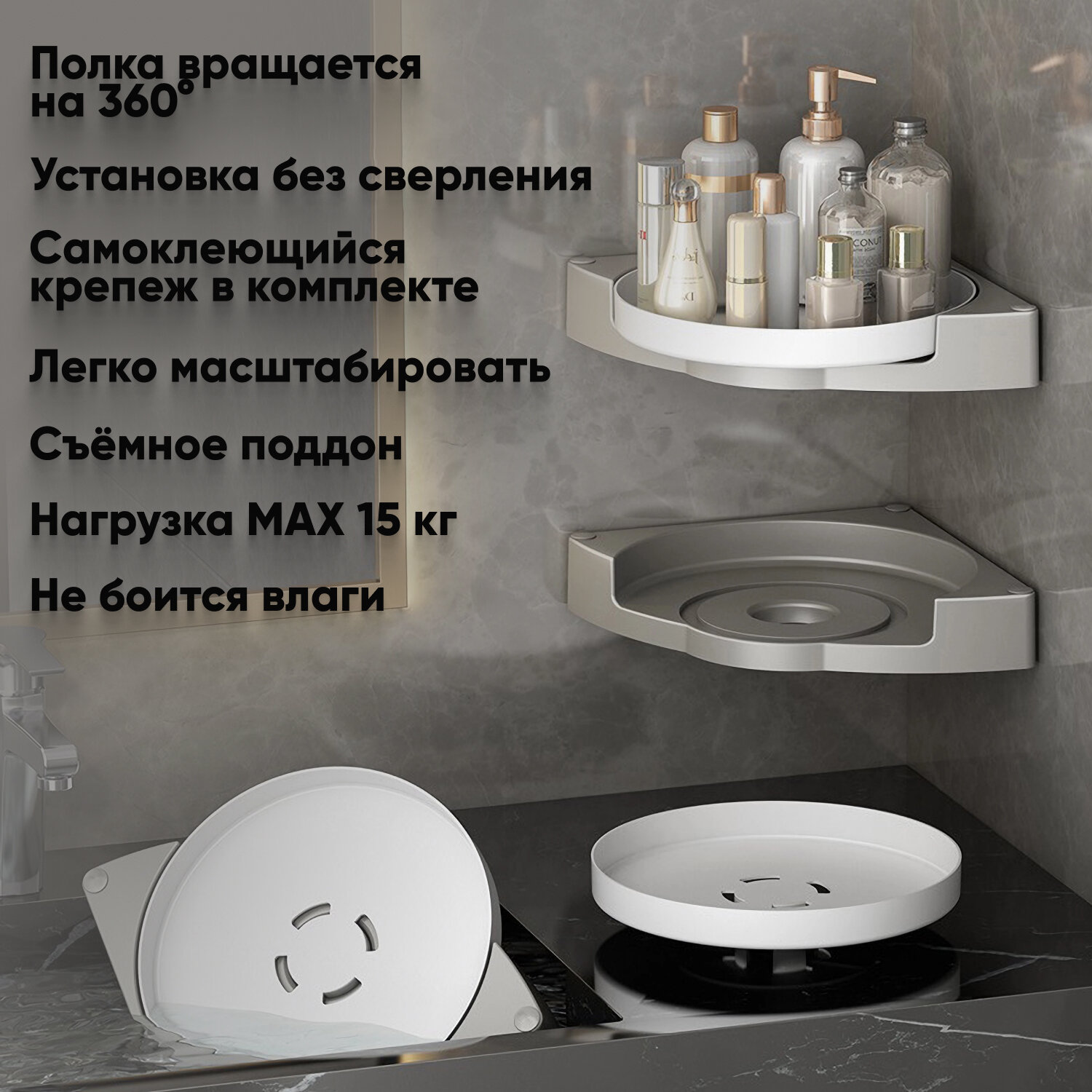 10 цен на Самоклеющаяся угловая полка для ванной 360, серая, вращающаяся, без сверления, на липучках, настенная, серебристая, аксессуар