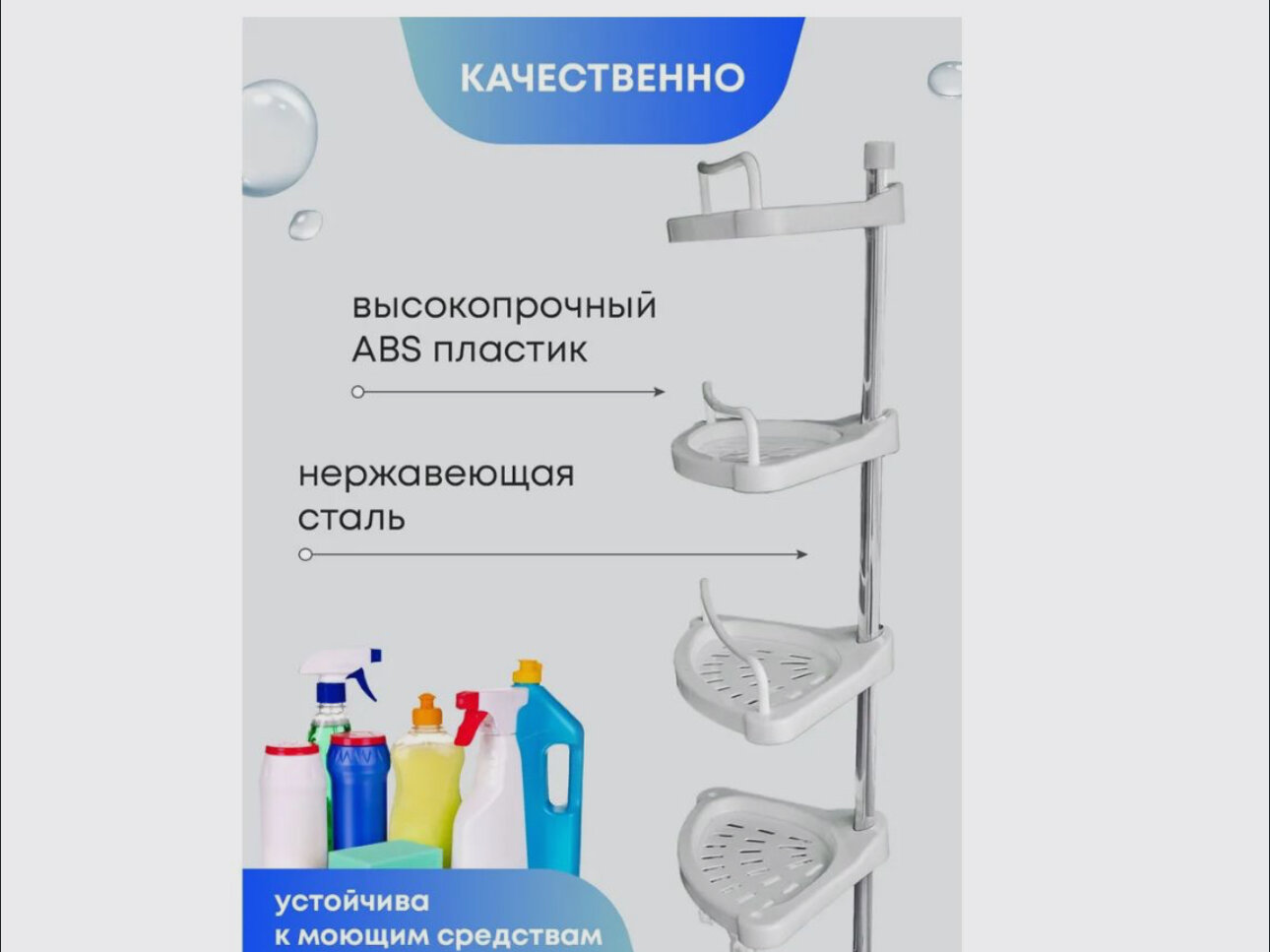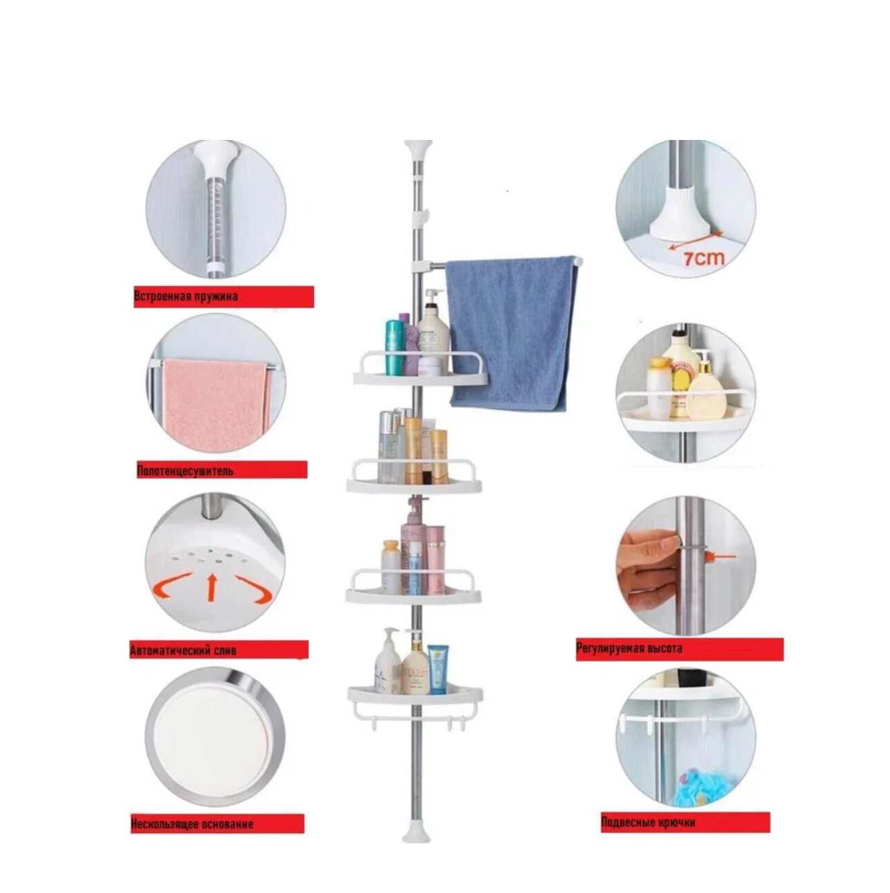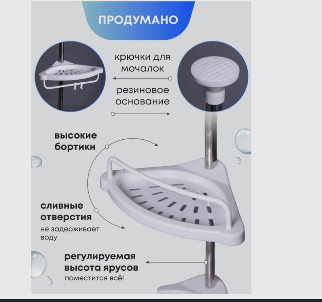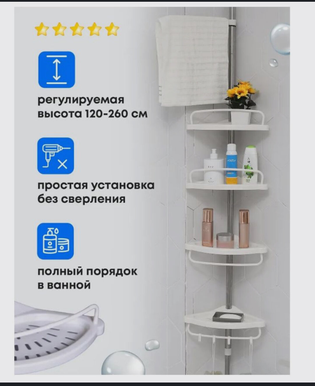 Телескопическая угловая полка/Полка для ванной информация: