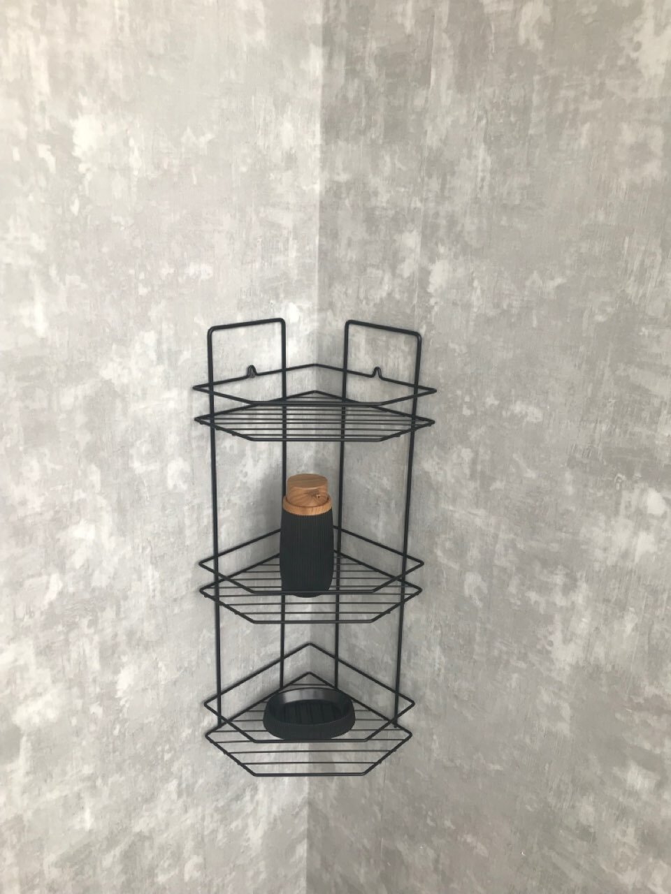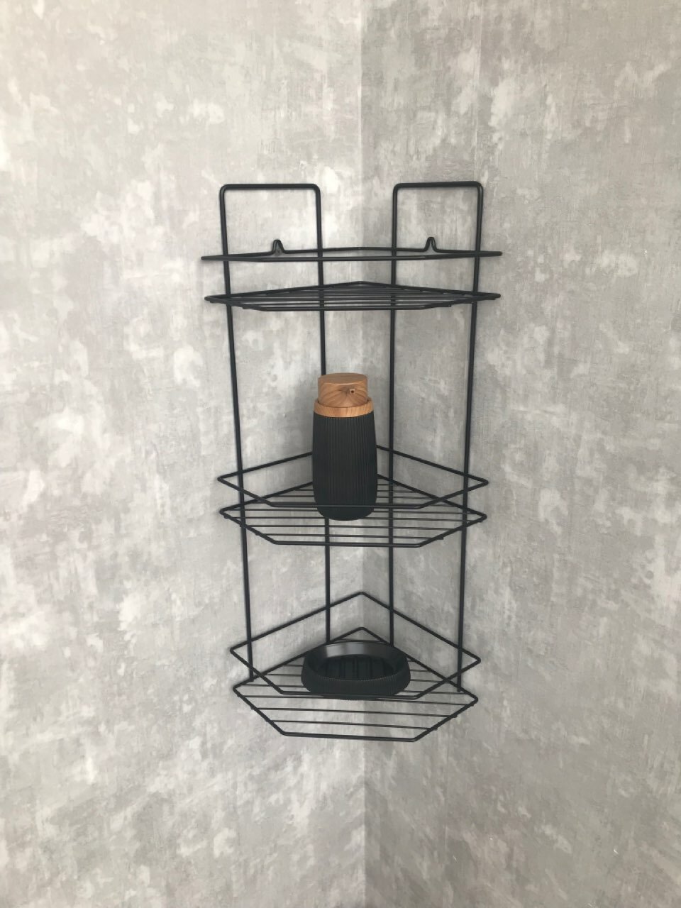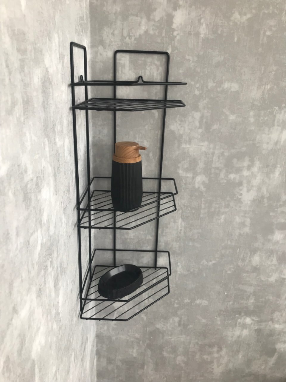 Полка угловая 3-х ярусная, черная, в ванную комнату информация: