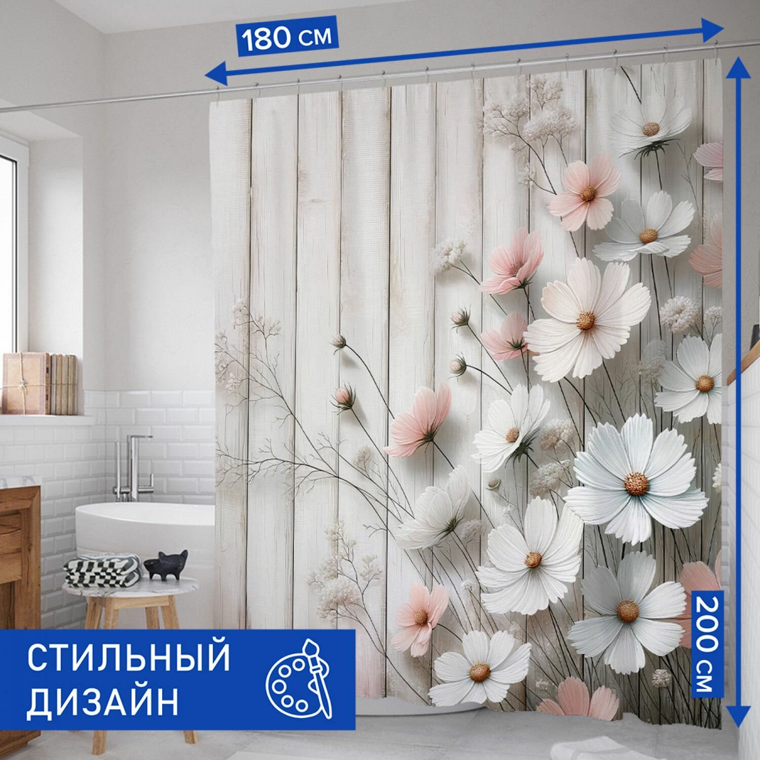 Штора для ванной, занавеска в ванную комнату тканевая "Цветочное панно" JoyArty