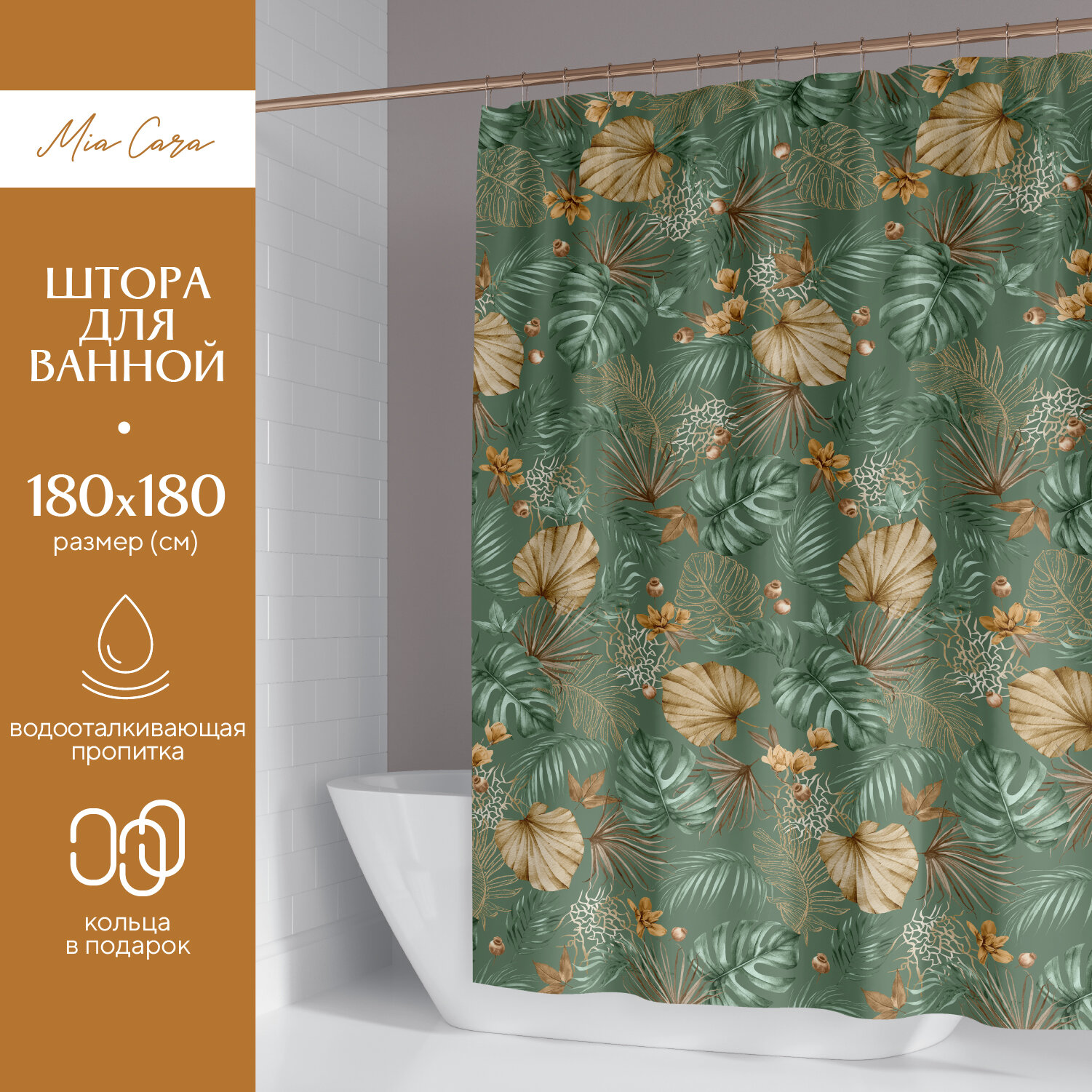 10 цен на Штора для ванной 180х180 "Mia Cara" Tropics