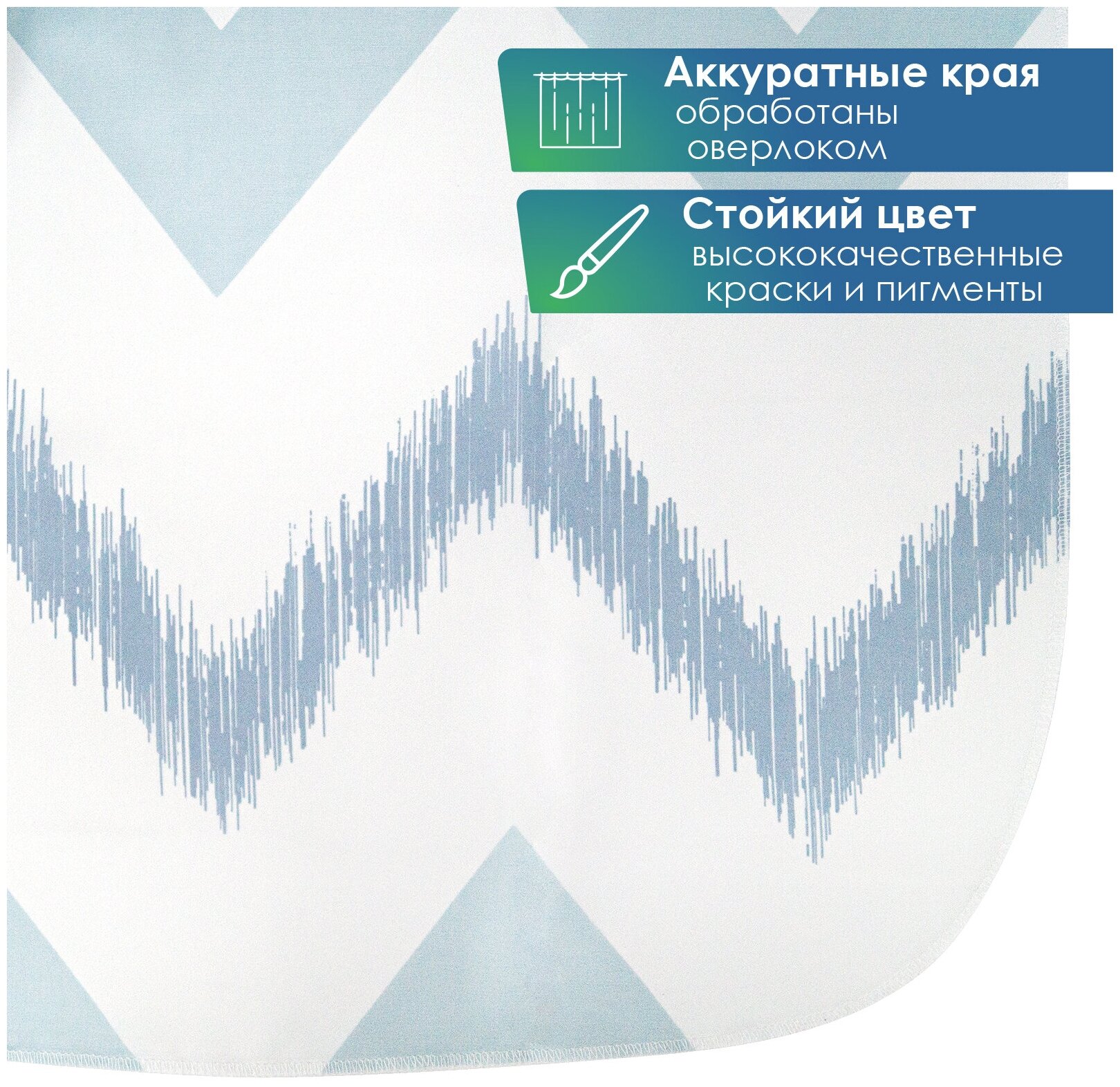 Штора для ванной комнаты VILINA тканевая с рисунком водоотталкивающая с кольцами 180х180см занавес в душевую Голубые зигзаги информация: