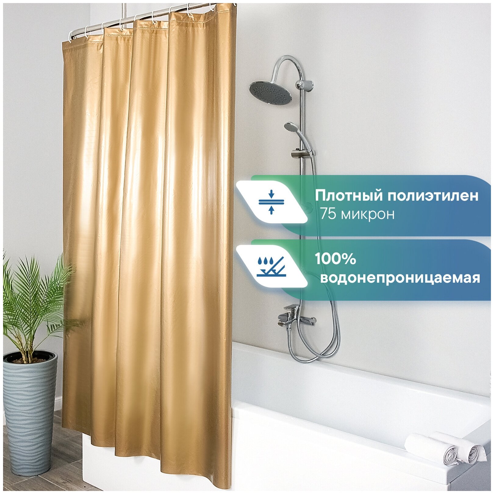10 цен на Штора для ванной водонепроницаемая VILINA 180х180 см "MIRAGE для душа однотонная золотая перламутровая с кольцами