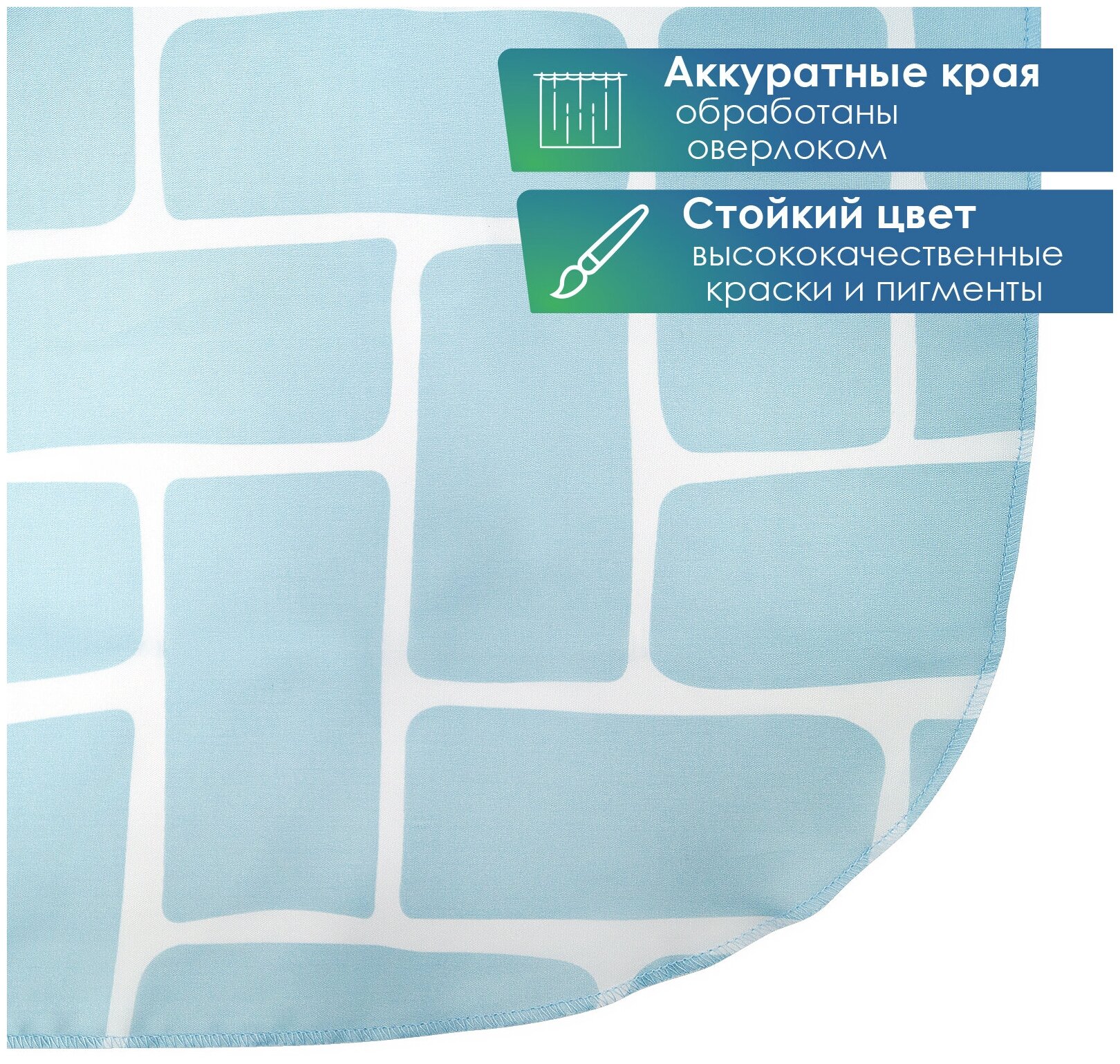 Штора для ванной комнаты VILINA тканевая с рисунком водоотталкивающая с кольцами 180х180см занавес в душевую Голубая мостовая информация: