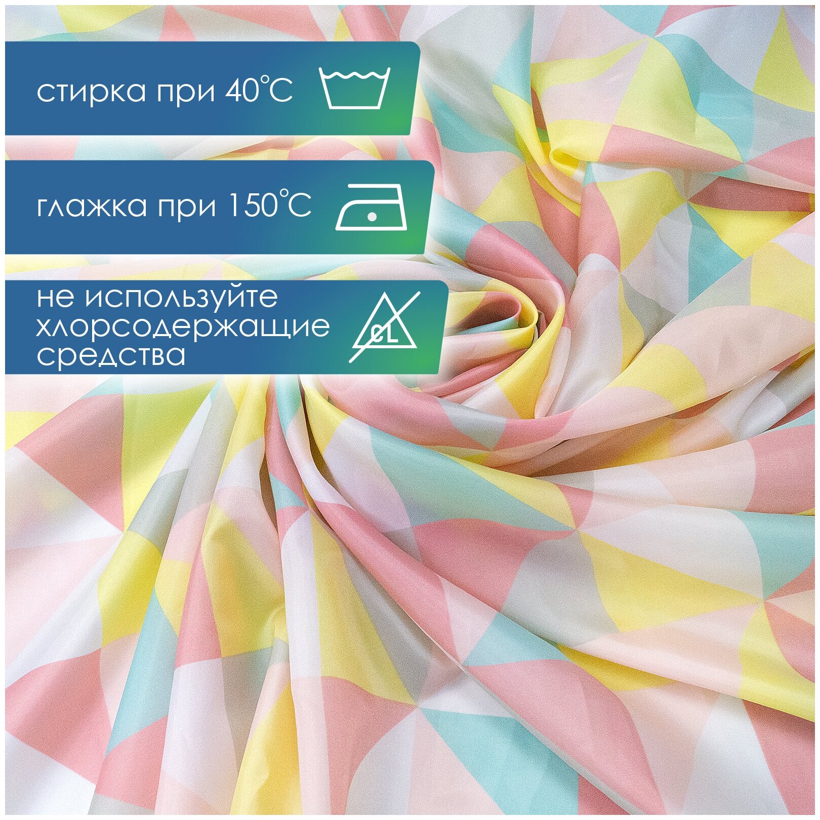 Штора для ванной комнаты VILINA тканевая с рисунком водоотталкивающая с кольцами 180х180см занавес в душевую Треугольная мозайка розовая информация:
