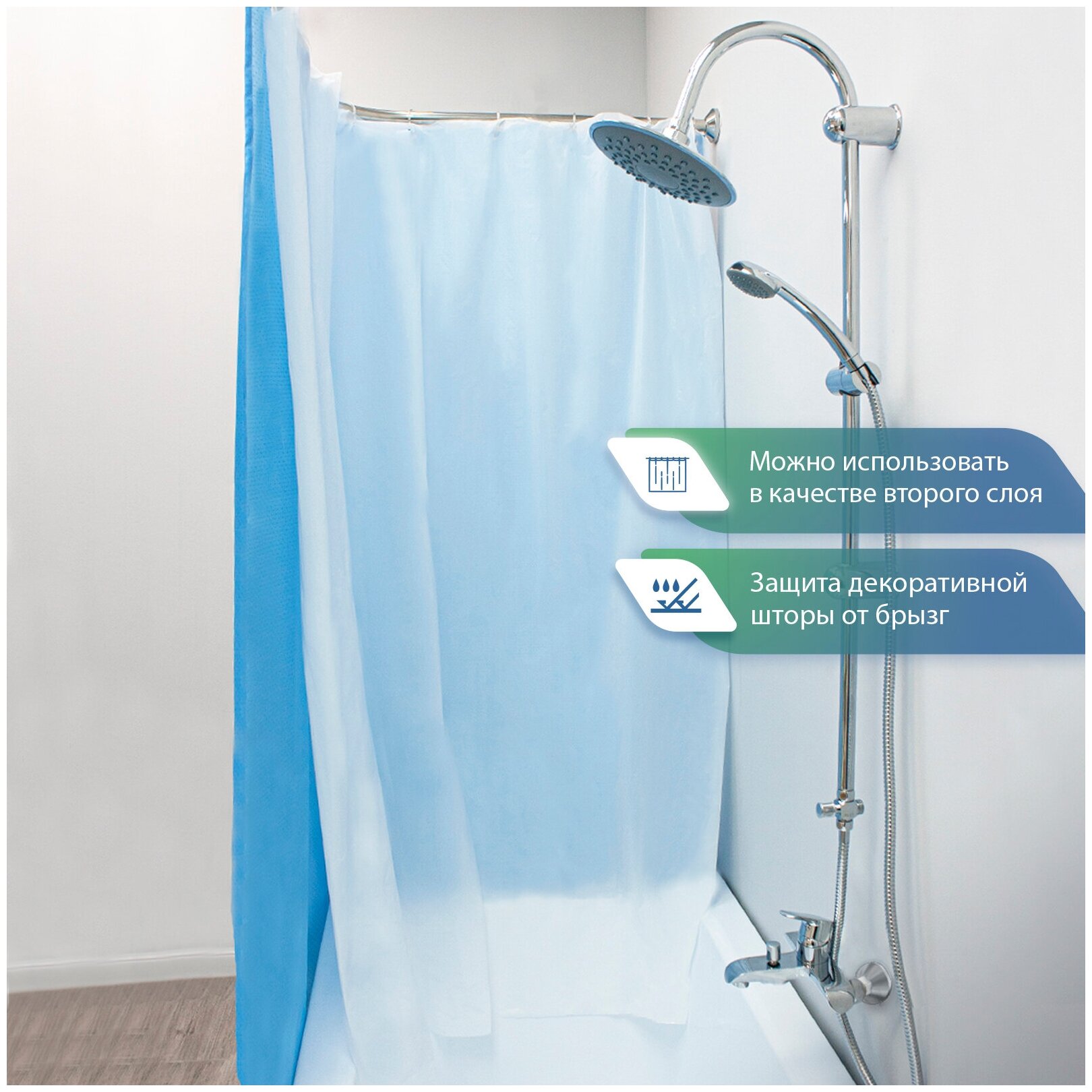 Занавес для ванной комнаты полиэтиленовый водонепроницаемый однотонный синий 180х180 см / Штора для ванной