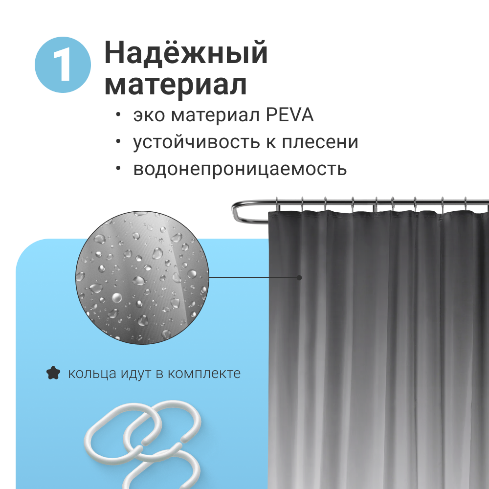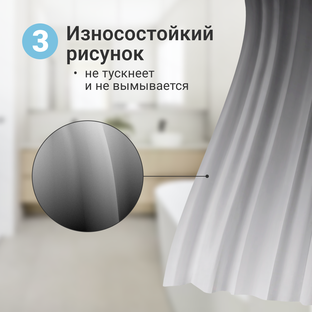 Штора для ванной комнаты Homium Bath Basic, цвет серый, размер 180*180см, однотонная информация:
