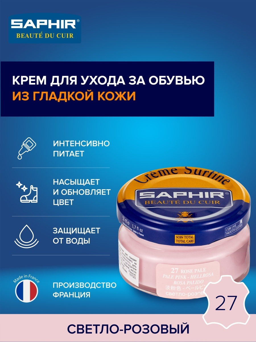 Крем Saphir Creme Surfine для обуви из гладкой кожи 50 мл, цвет 27 светло-розовый (rose pale)