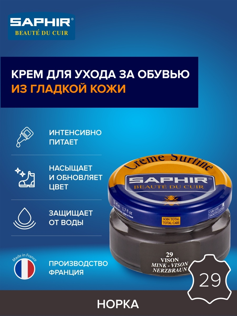 Крем Saphir Creme Surfine для обуви из гладкой кожи 50 мл, цвет 29 норка