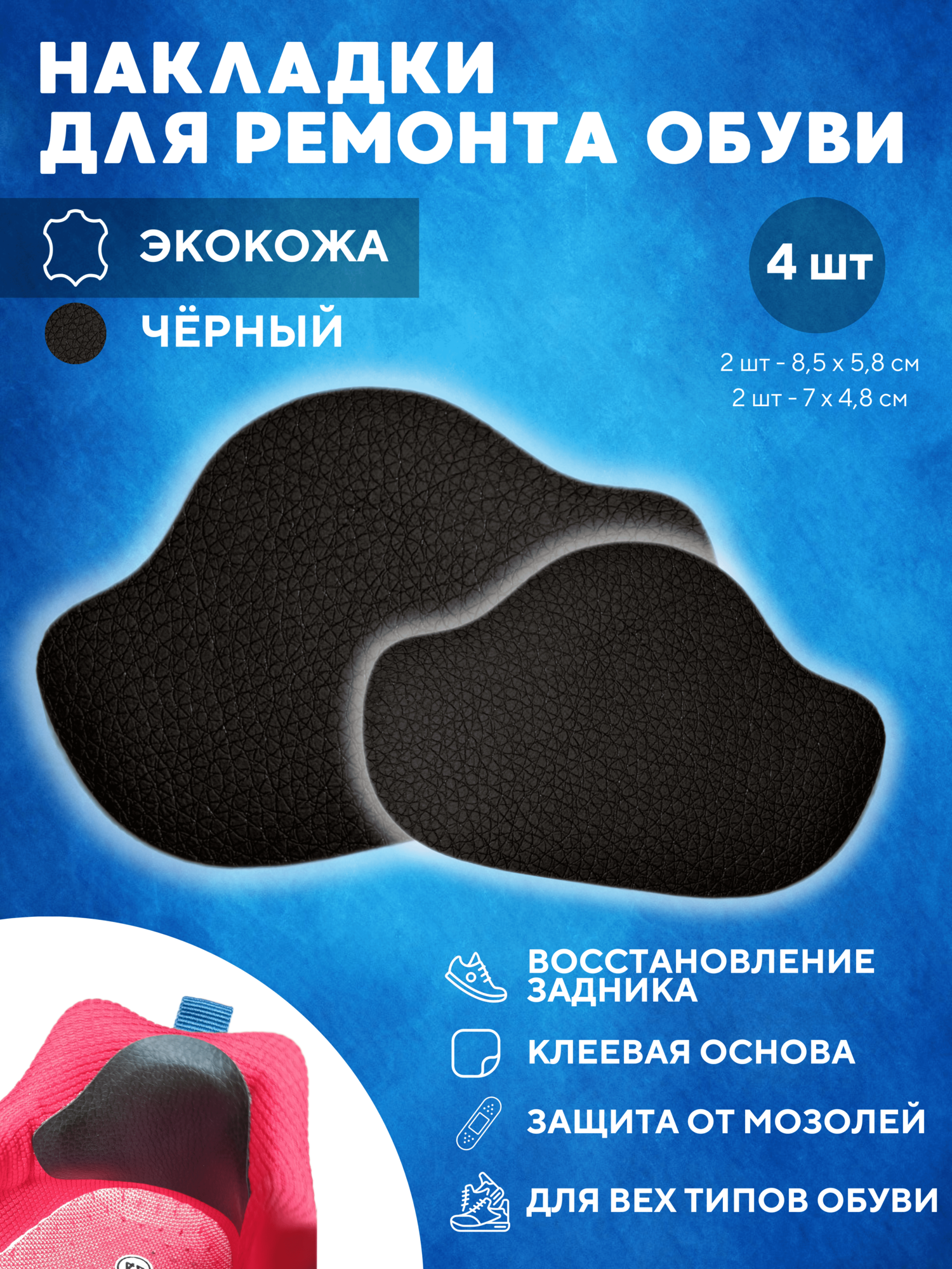 Накладки самоклеящиеся для ремонта задников обуви, экокожа, черный, 4 пары 188 ₽