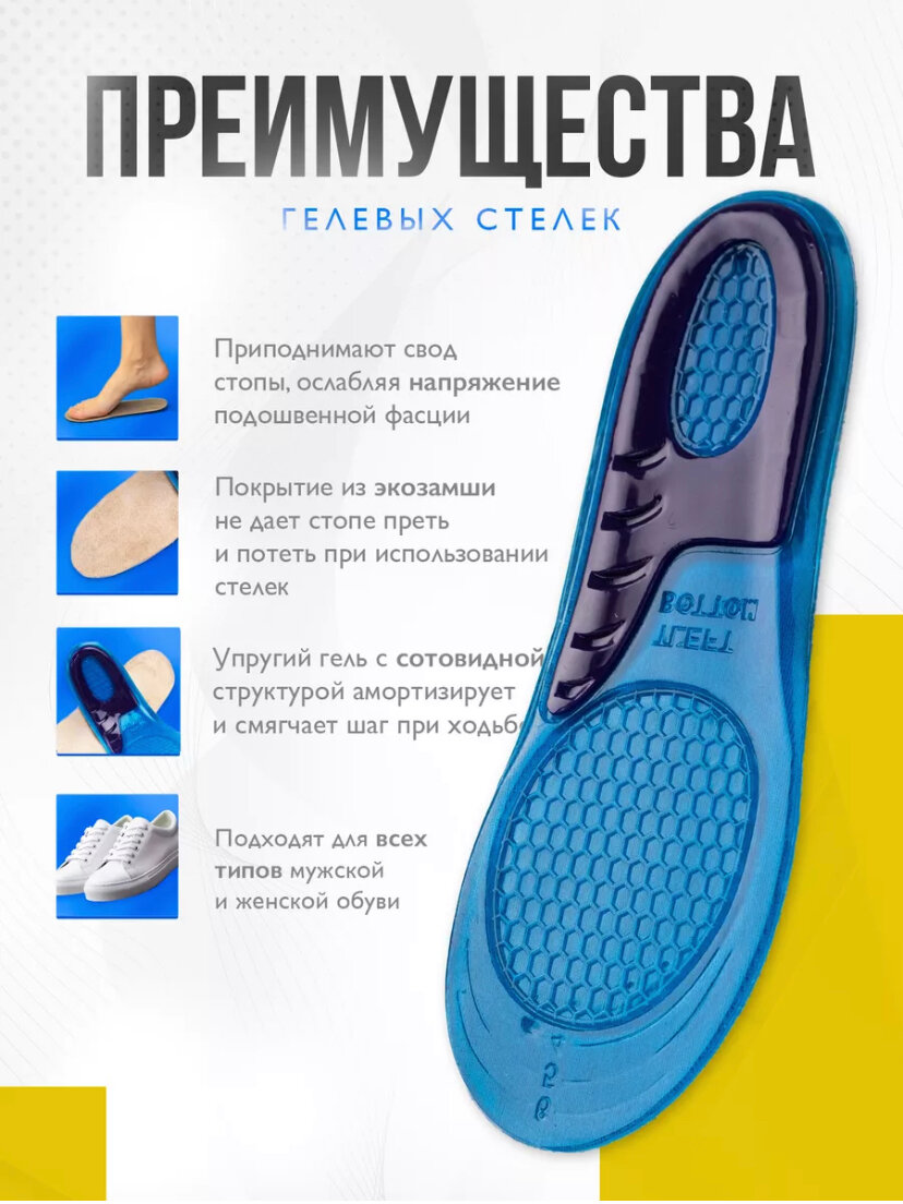 Отзывы на Стельки гелевые для обуви, спортивные, мужские и женские (размер 41 - 46)