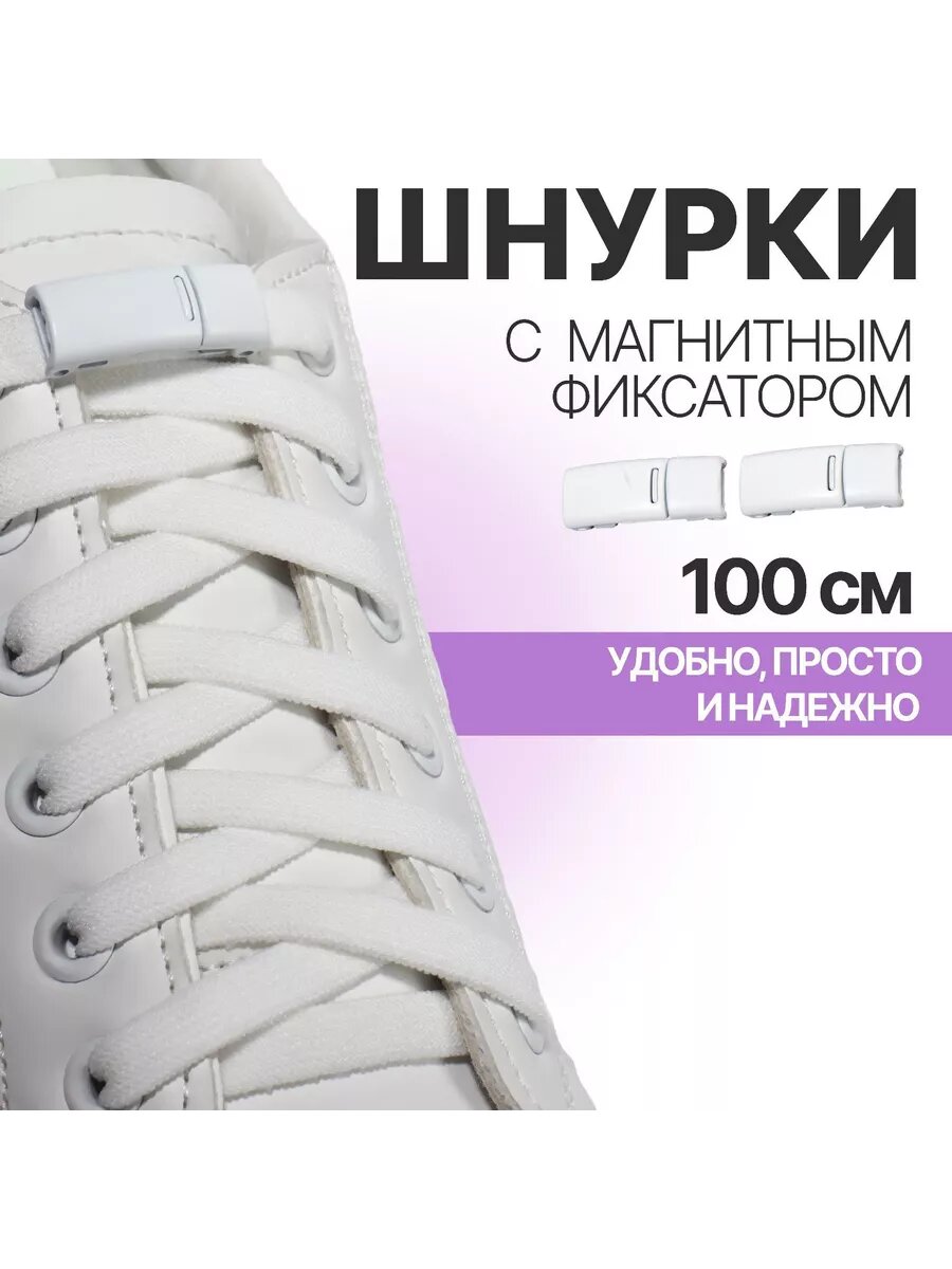 Отзывы на Шнурки для обуви, на магнитах, пара, с плоским сечением и фиксатором, 100 см, цвет белый
