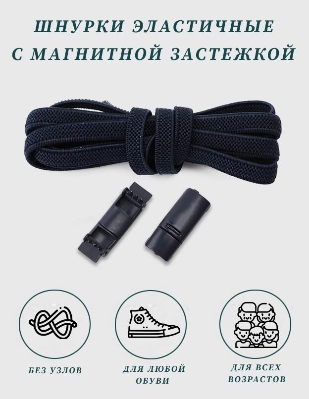 Шнурки эластичные для обуви с магнитными застёжками в цвет шнурков, 2 шт., длина 1 м, темно-синий информация: