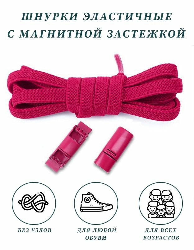 Шнурки эластичные для обуви с магнитными застёжками в цвет шнурков, 2 шт., длина 1 м, малиновые информация: