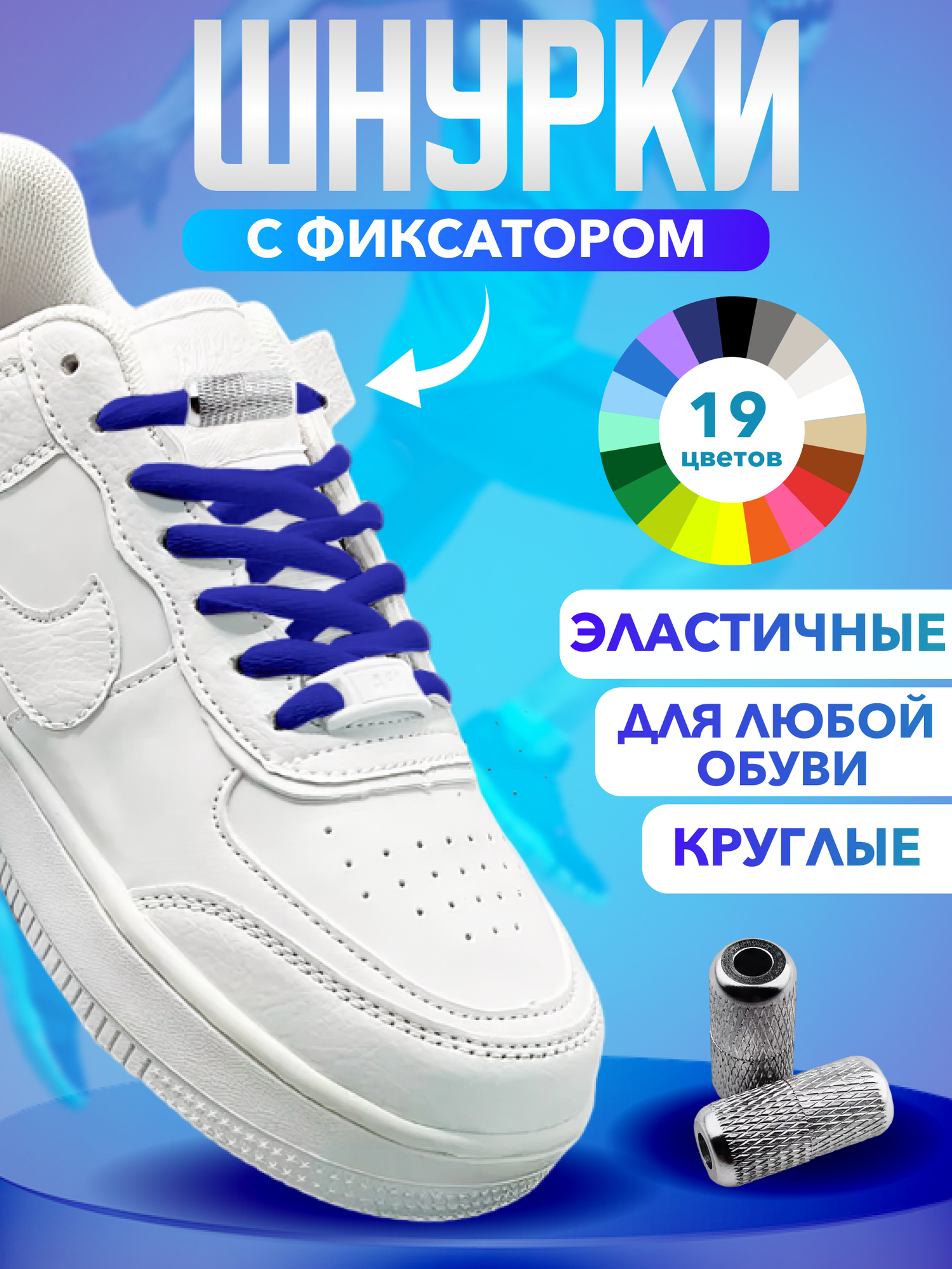 Отзывы на Шнурки для обуви эластичные круглые с фиксаторами зажимами рифлеными ярко-синие - 1 пара