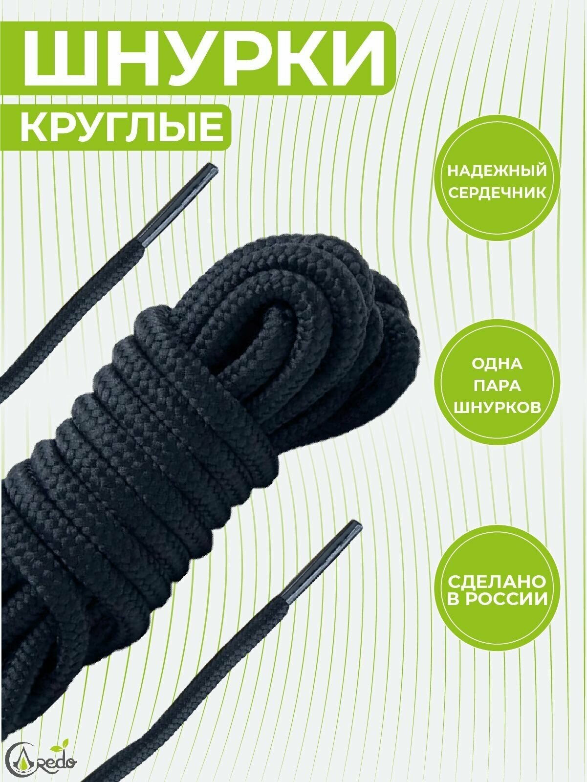 Шнурки для берцев и другой обуви, длина 120 сантиметров, диаметр 5 мм. Сделаны в России. Черные