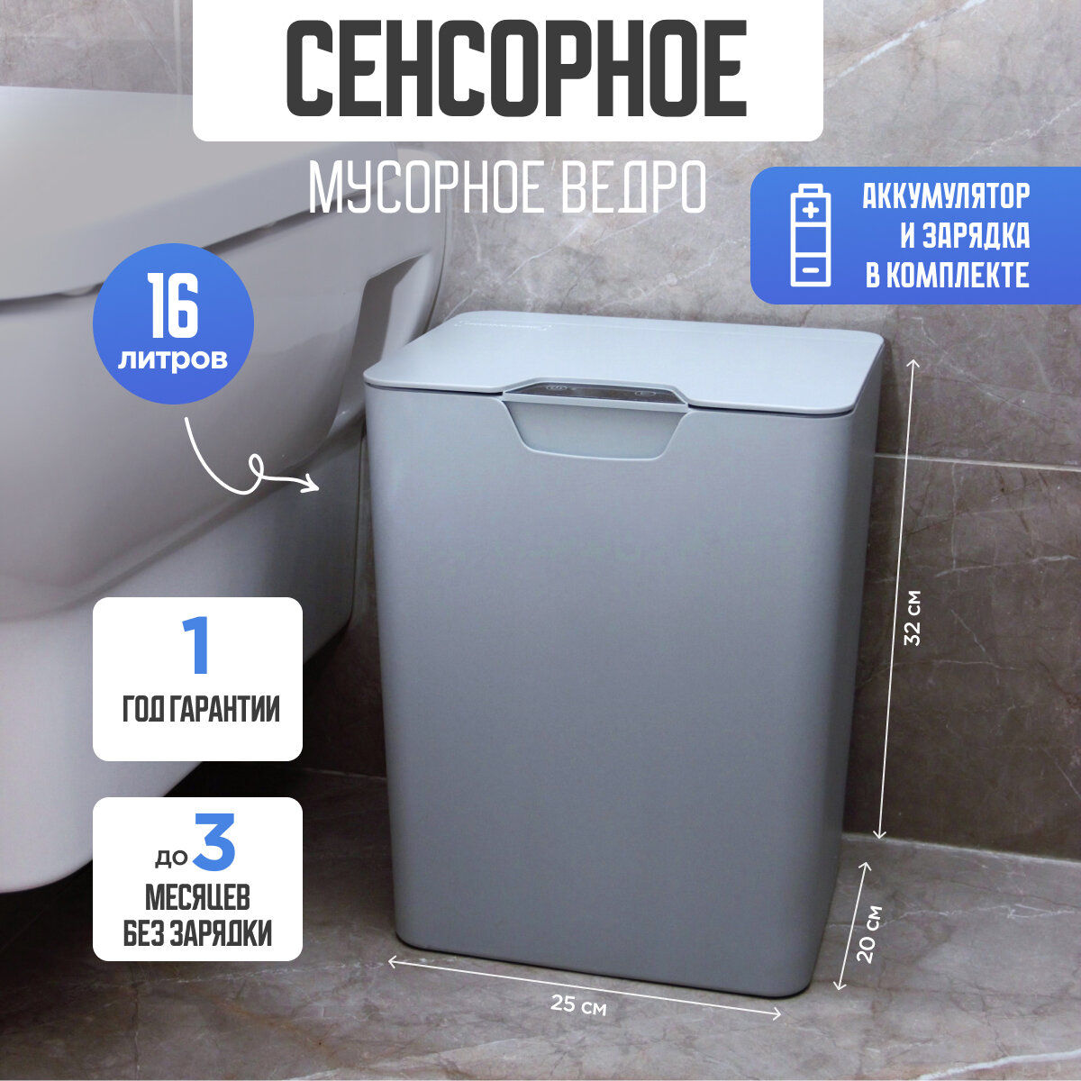 10 цен на Умное сенсорное мусорное ведро для кухни и туалета, серое