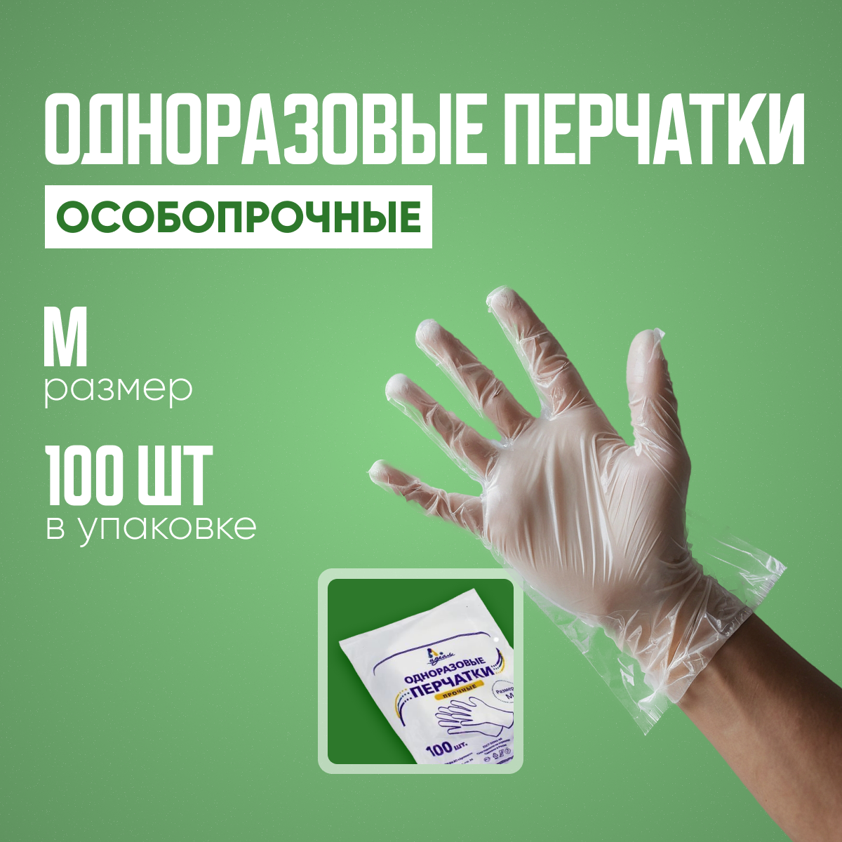 10 цен на Перчатки одноразовые "Идеал" Прочные, размер - M, 100 - штук. Полиэтилен.