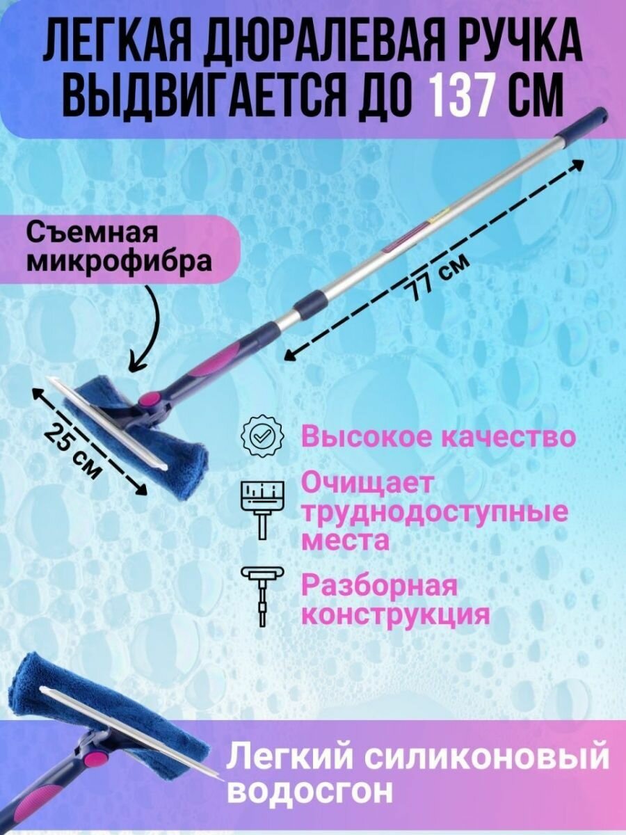 Отзывы на Щетка для мытья окон, стекломойка с телескопической длиной ручкой, окномойка с резиновым скребком и губкой. Швабра для окон Окномойка