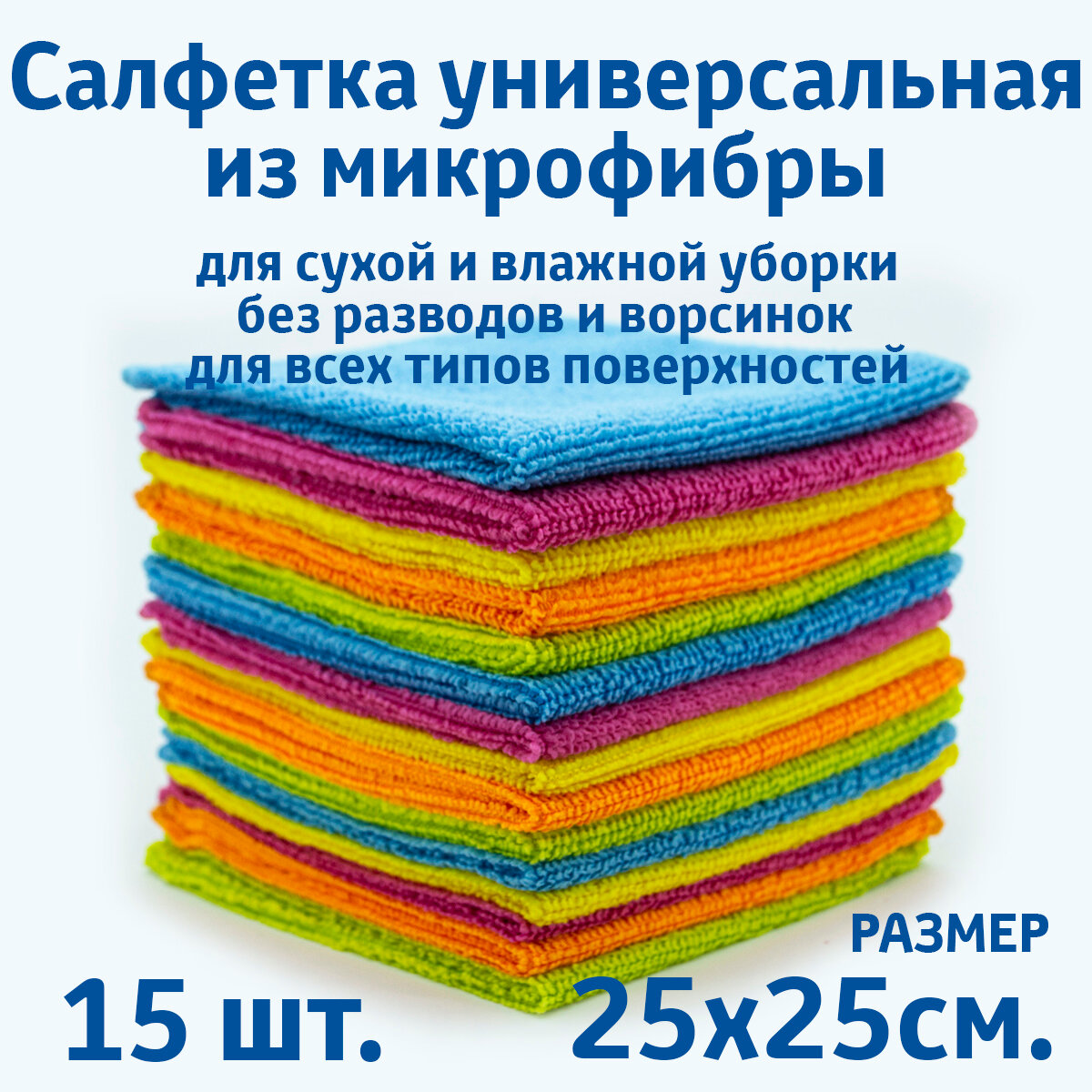 Салфетки для уборки из микрофибры, универсальные, 15 шт. в упаковке, размер 25х25см. информация: