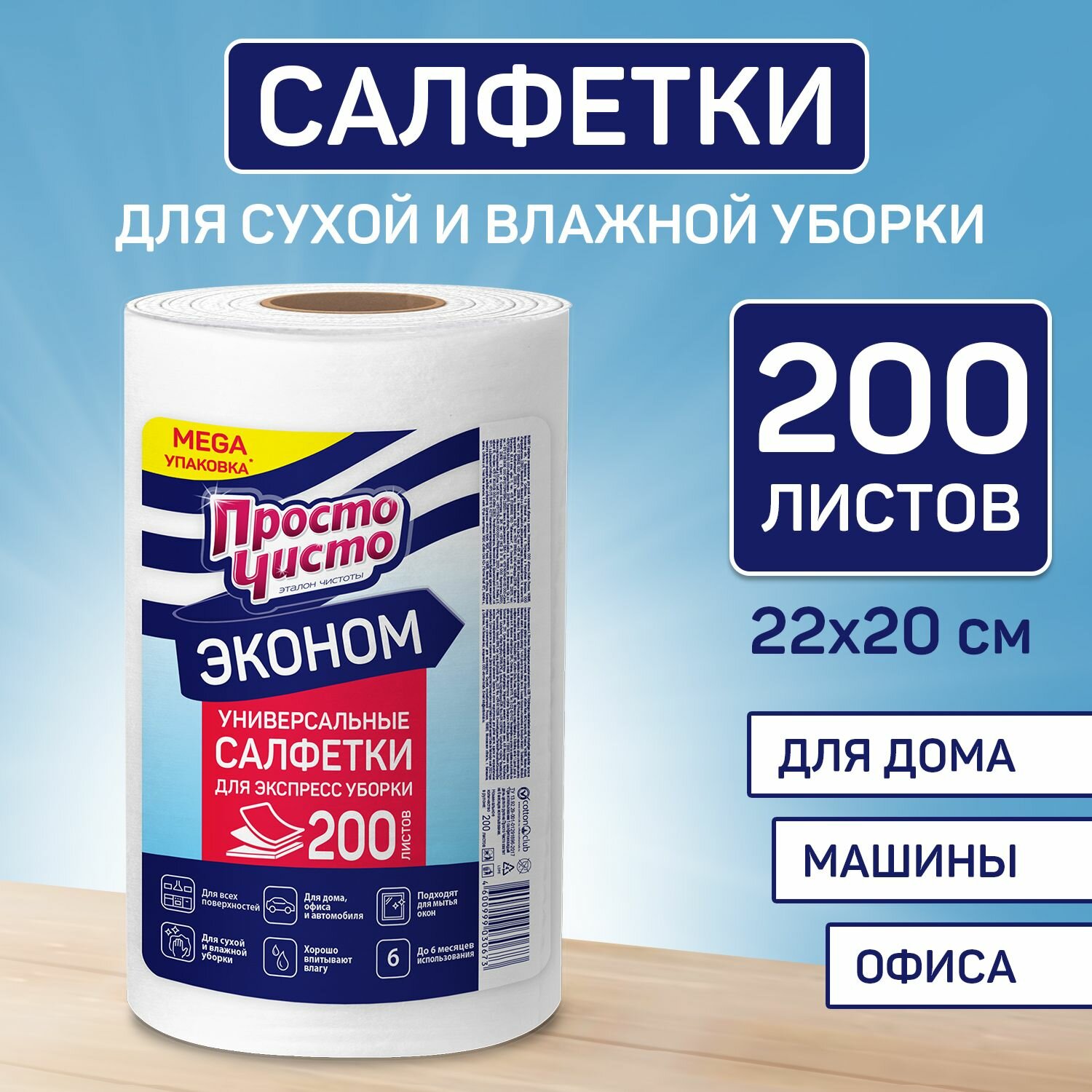 10 цен на Салфетки для уборки в рулоне вискозные 200 шт, просто чисто