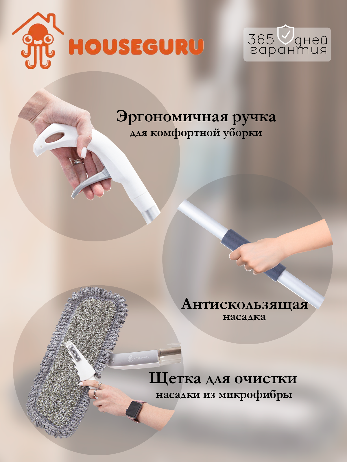 Швабра HOUSEGURU с распылителем и насадкой из микрофибры информация: