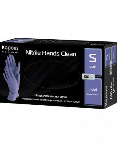 Нитриловые перчатки неопудренные, текстурированные, нестерильные Kapous "Nitrile Hands Clean", фиолетовые, 100 шт., S информация: