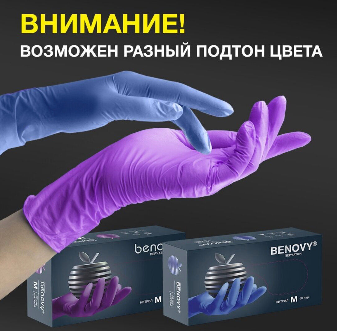 10 цен на Перчатки нитриловые одноразовые Benovy 50 пар/100 шт, сиренево-голубые, размер L, 1 уп.