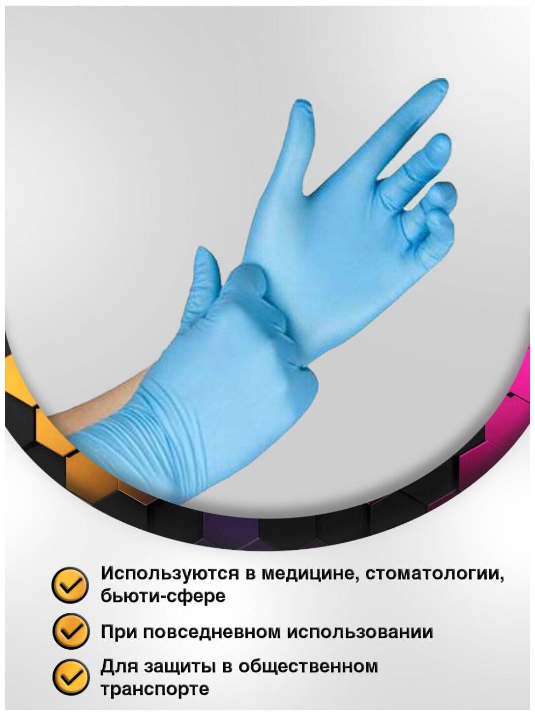 10 цен на Перчатки Benovy, нитриловые, голубые, размер М, 100 пар (200 шт) в упаковке