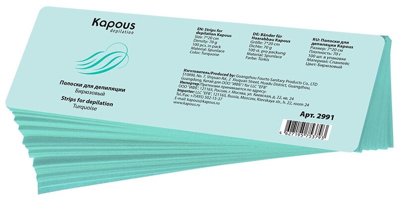 Полоски для депиляции Kapous, бирюзовый, 7*20 см, 100 шт./уп. информация: