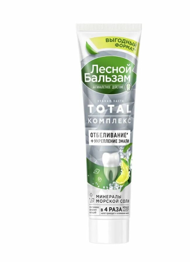 Зубная паста отбеливающая Лесной Бальзам Total Комплекс отбеливание, с морской солью и лимоном, 150 гр