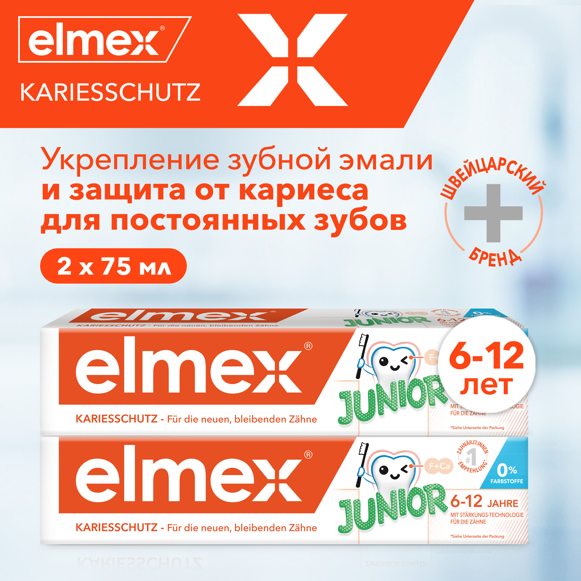 Зубная паста детская Elmex Junior защита от кариеса, для детей от 6 до 12 лет, 75 мл 2шт информация:
