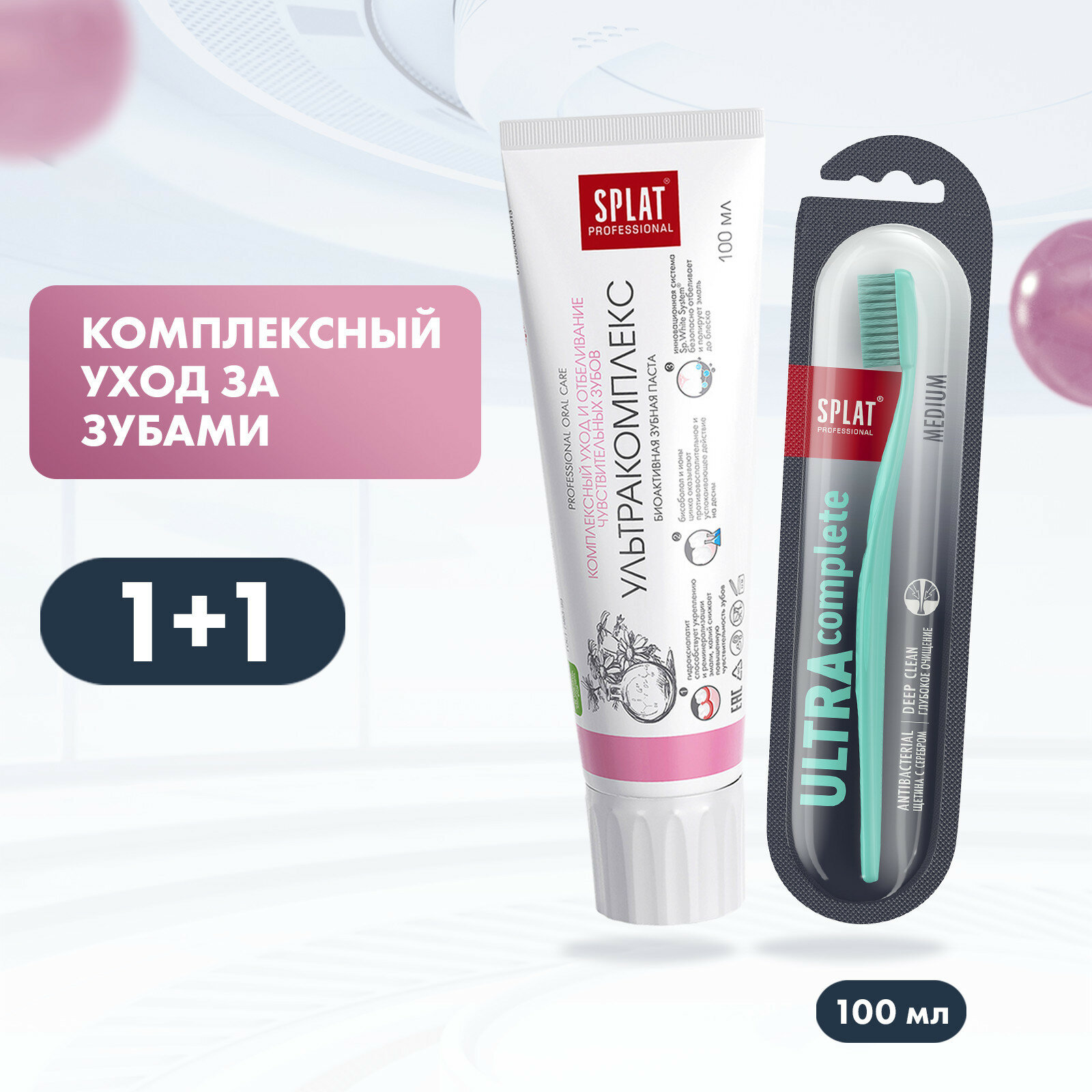 Co-pack Prof ULTRACOMPLEX / ультракомплекс зубная паста, 100 мл + Prof ULTRA COMPLETE Medium зубная щетка (Бирюзовый)