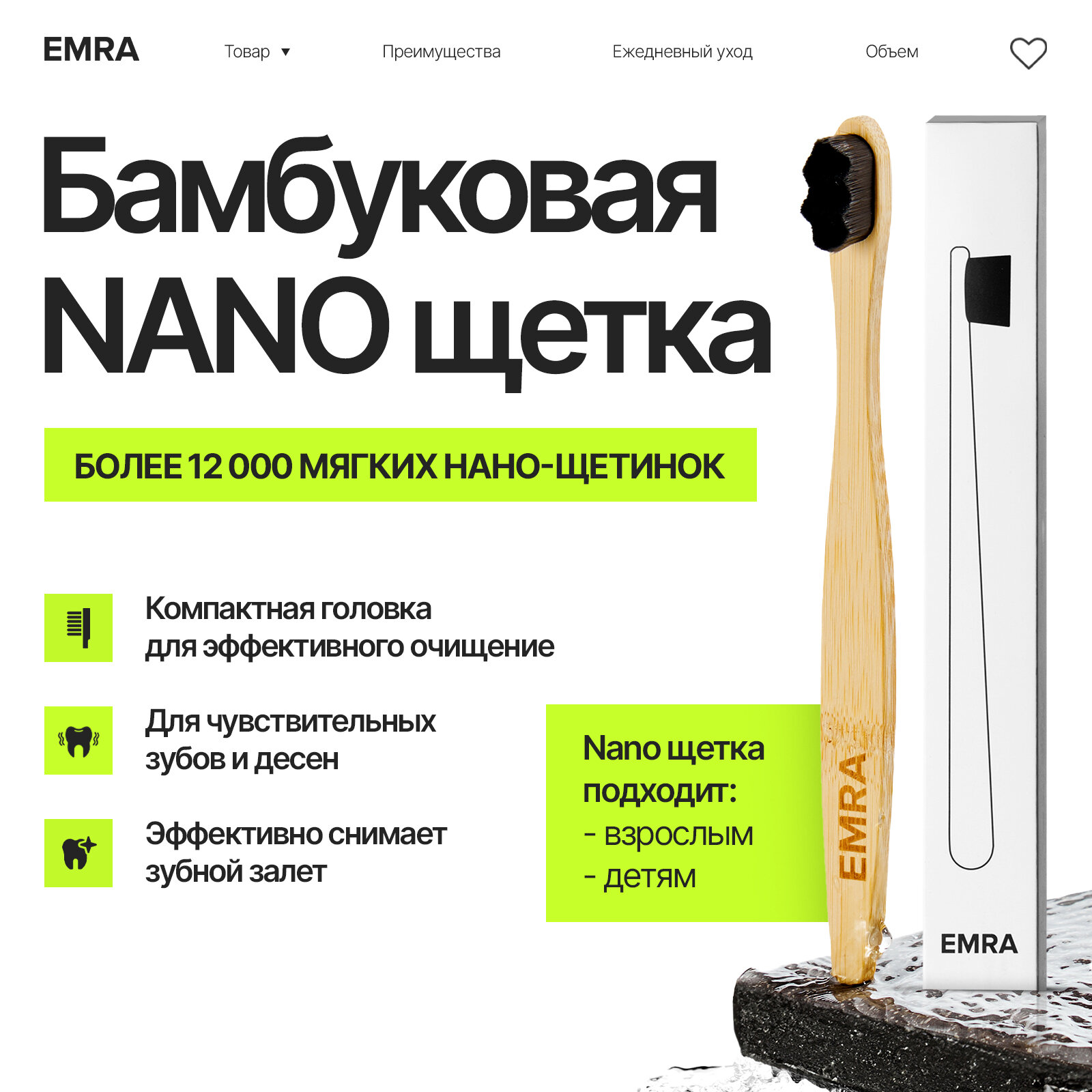 Мягкая бамбуковая нано щетка для чувствительных зубов, брекетов, имплантов EMRA информация: