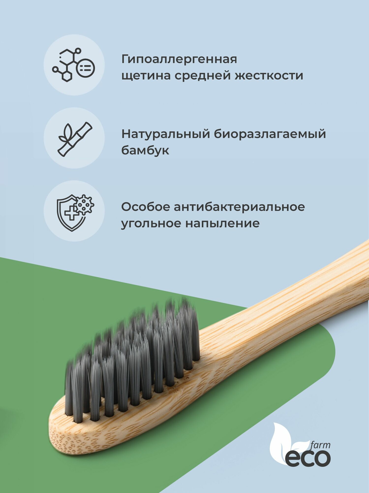 Бамбуковая зубная щетка средней жесткости с угольным напылением DENT & DONT , набор 10 шт информация: