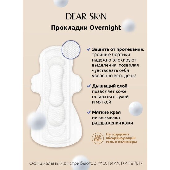 Женские гигиенические прокладки Dear Skin Air embo Ночные с крылышками, 5 капель, 12 шт информация: