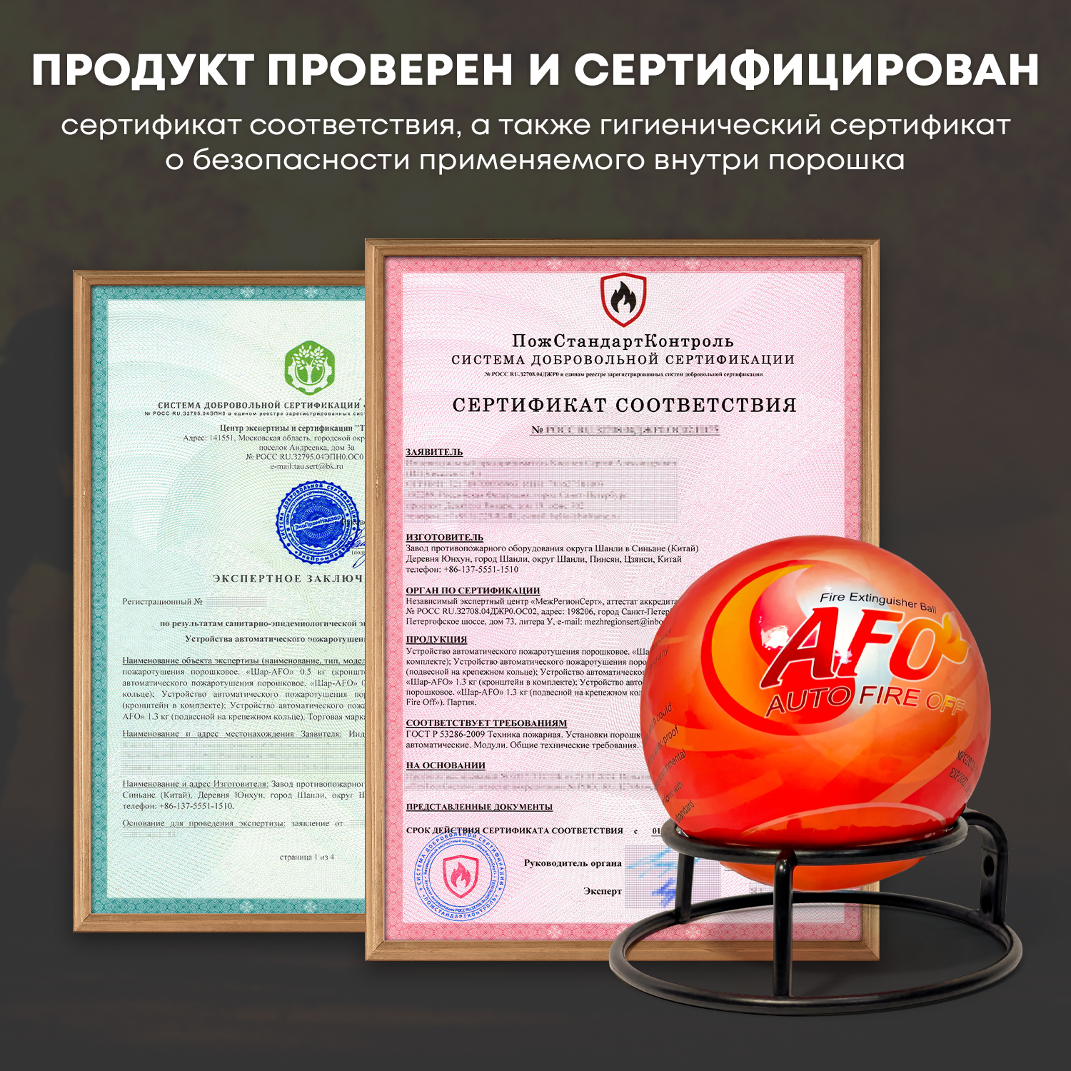 Огнетушитель Шар-AFO 0.5 кг информация: