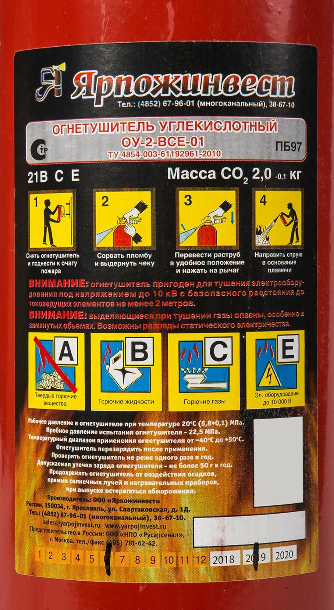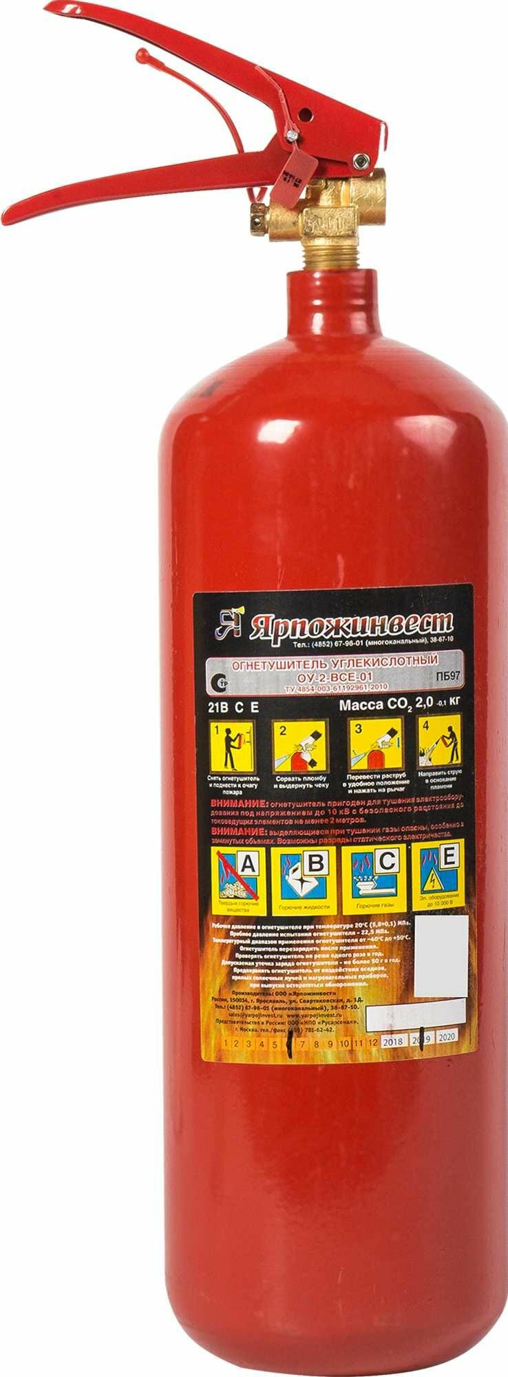 Огнетушитель углекислотный Ярпожинвест ОУ-2 класс пожара ВСЕ информация: