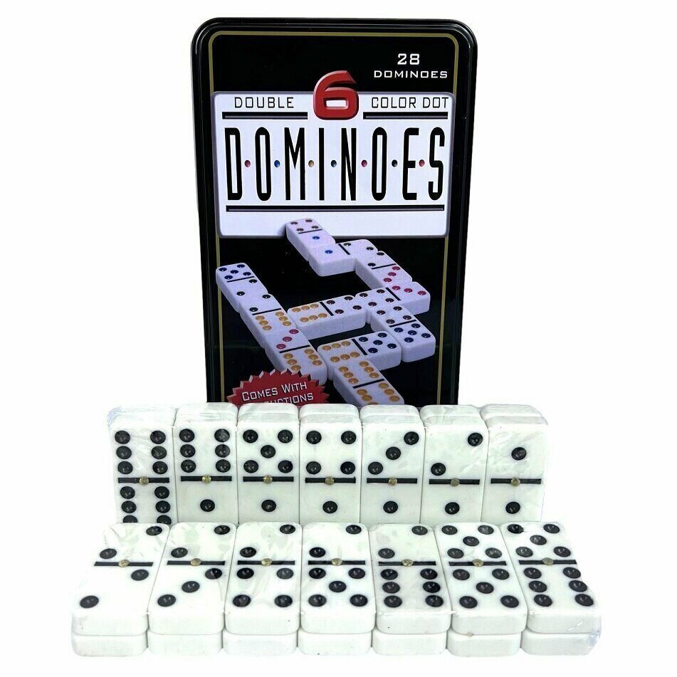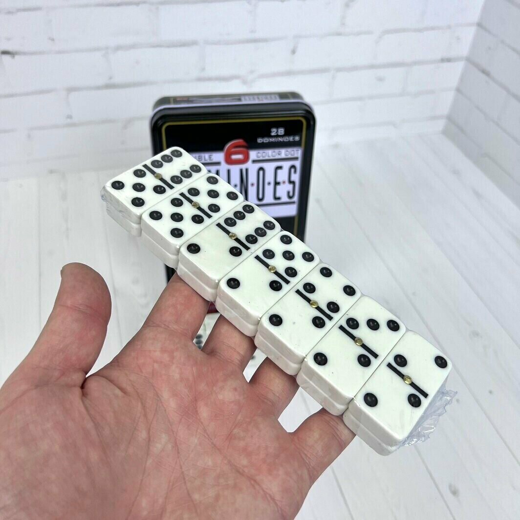 10 цен на Домино в темном железном боксе (6 точек), кости белые с черными точками