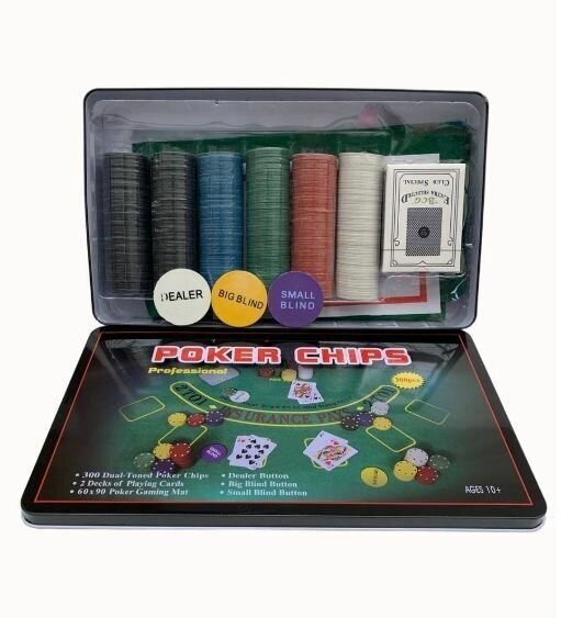 Профессиональный набор для игры в покер. 300 фишек. Подарочный набор для покера в металлической коробке информация: