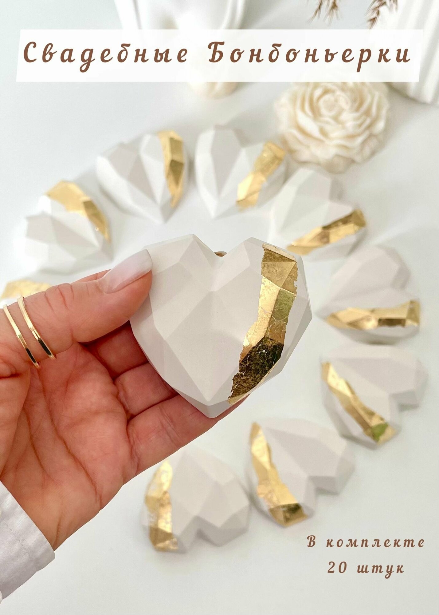 Свадебные подарки комплименты для гостей / Свадебные бонбоньерки белые с золотым 20 штук информация: