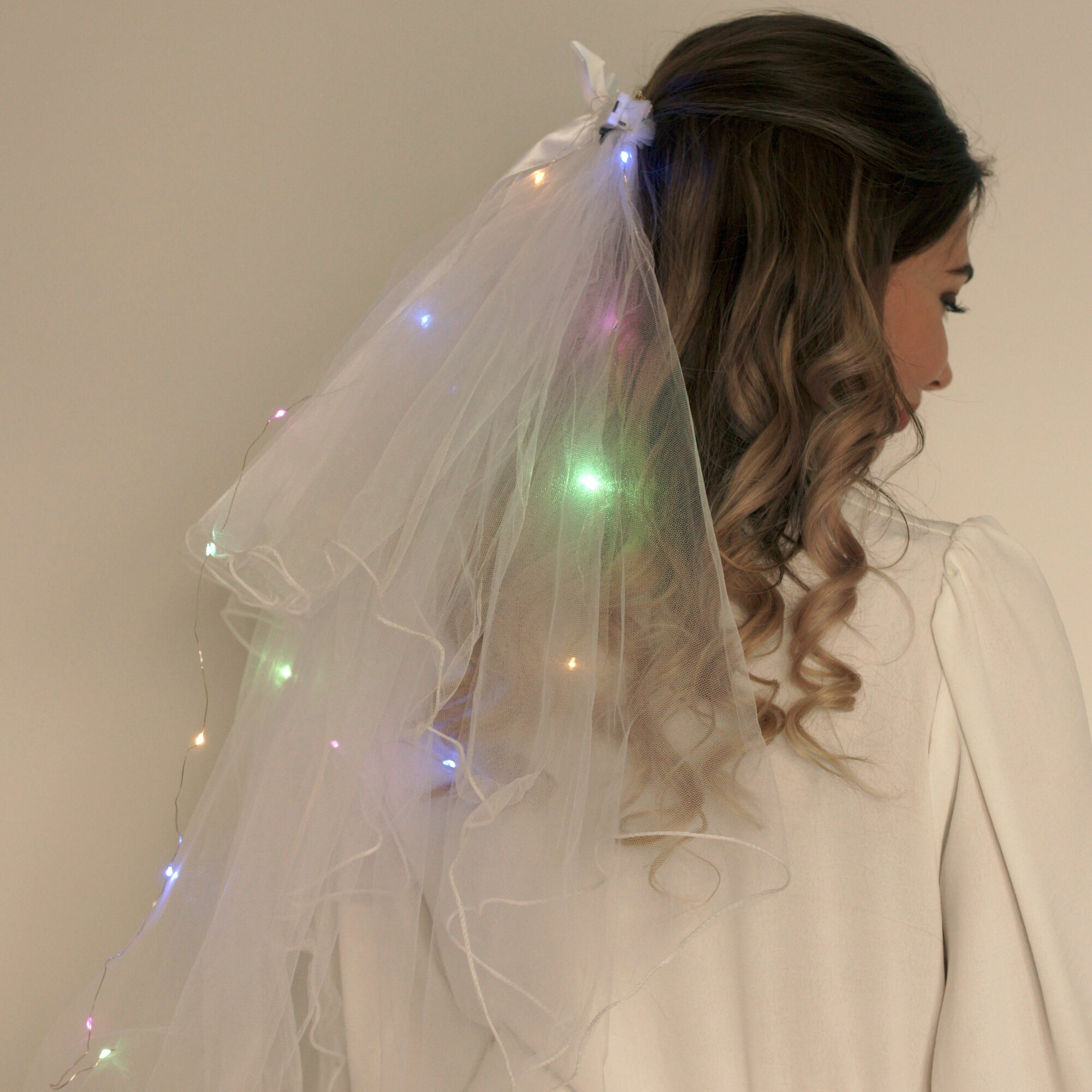 Фата для девичника белая светящаяся с разноцветной подсветкой информация:
