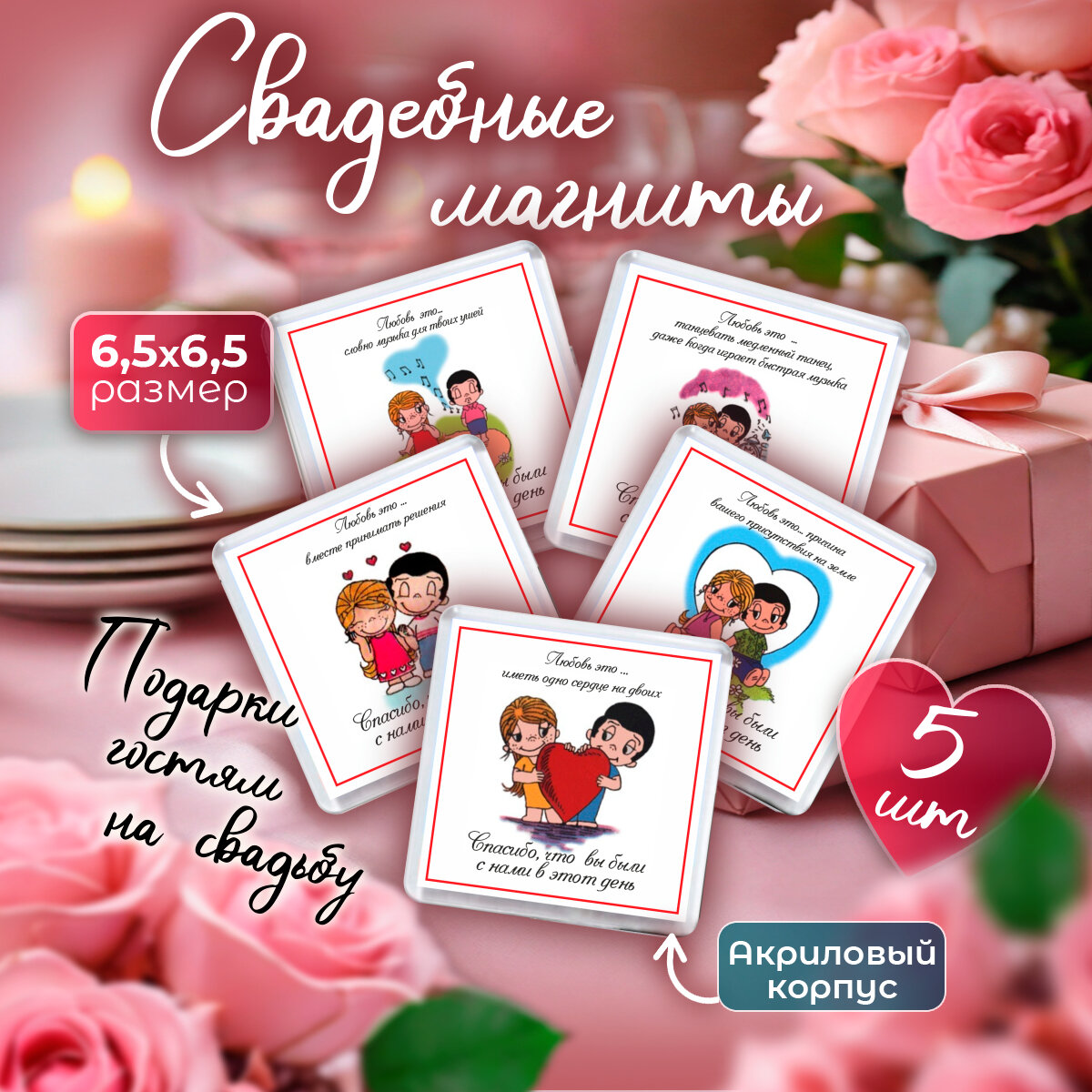 5 шт. Свадебные магниты для гостей. love is. Подарки на свадьбу, конкурсы информация: