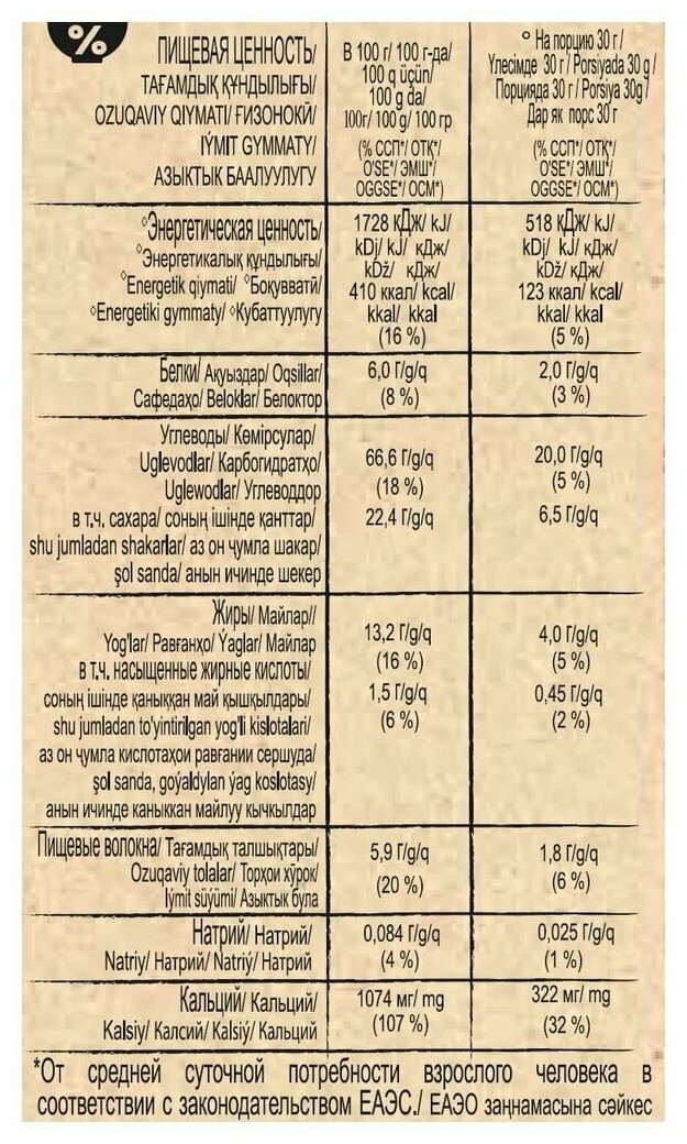 | Не содержит | ГМО / глютен / искусственные красители / консерванты |