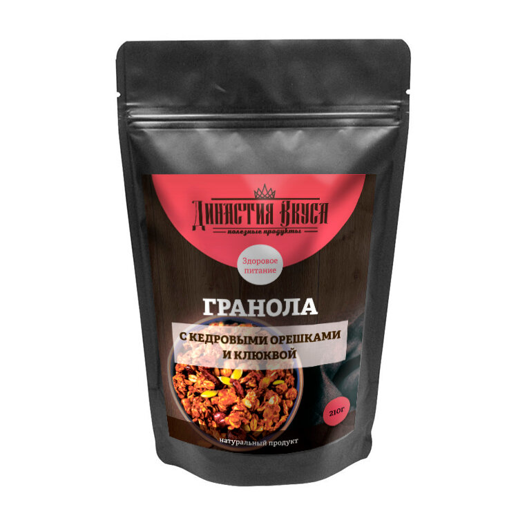 10 цен на Гранола с кедровыми орешками и клюквой, Династия Вкуса, 210 гр.